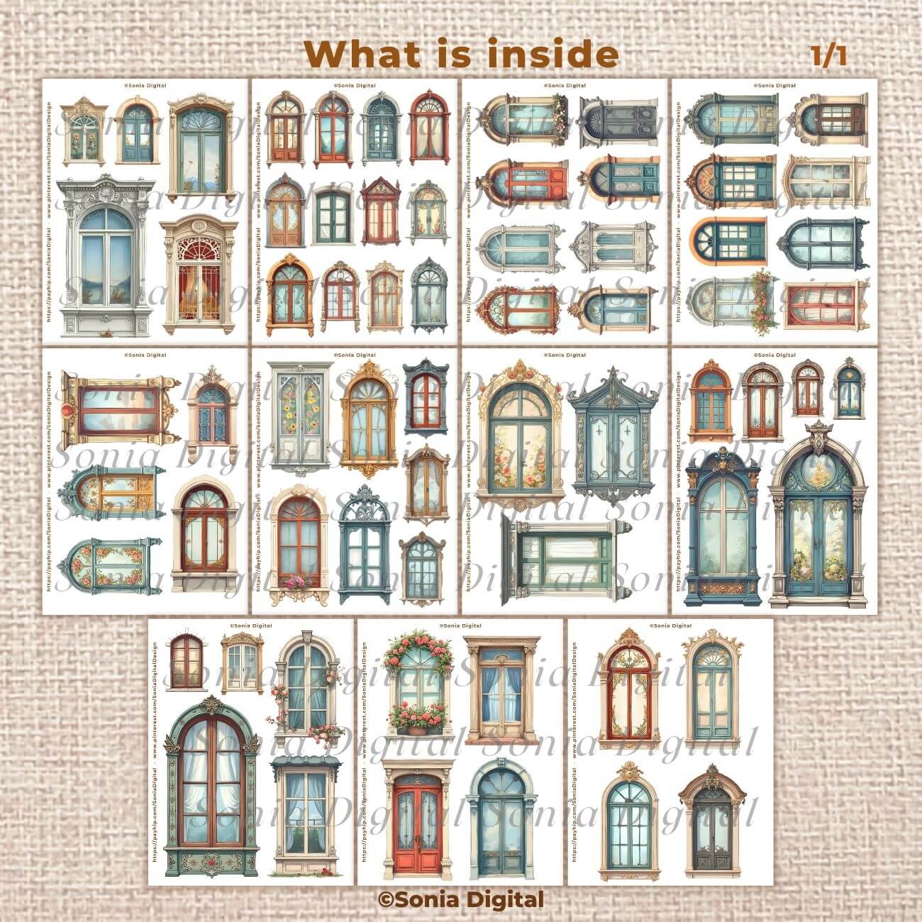 Perfect for DIY enthusiasts, this downloadable series features charming period windows motifs, ready to be printed, cut, and added to your artistic projects.