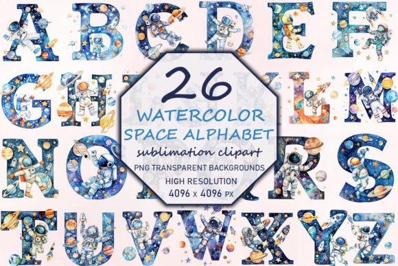 Watercolor Space Alphabet Sublimation