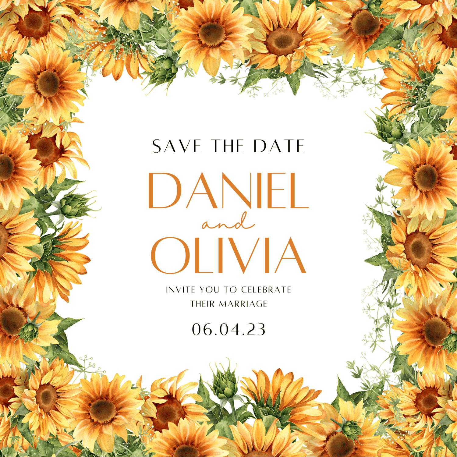 Kick off your wedding countdown with joy and sunshine. This sunflower-themed Save the Date card is ideal for rustic or farmhouse-style weddings. Editable directly in Canva — no design experience needed.