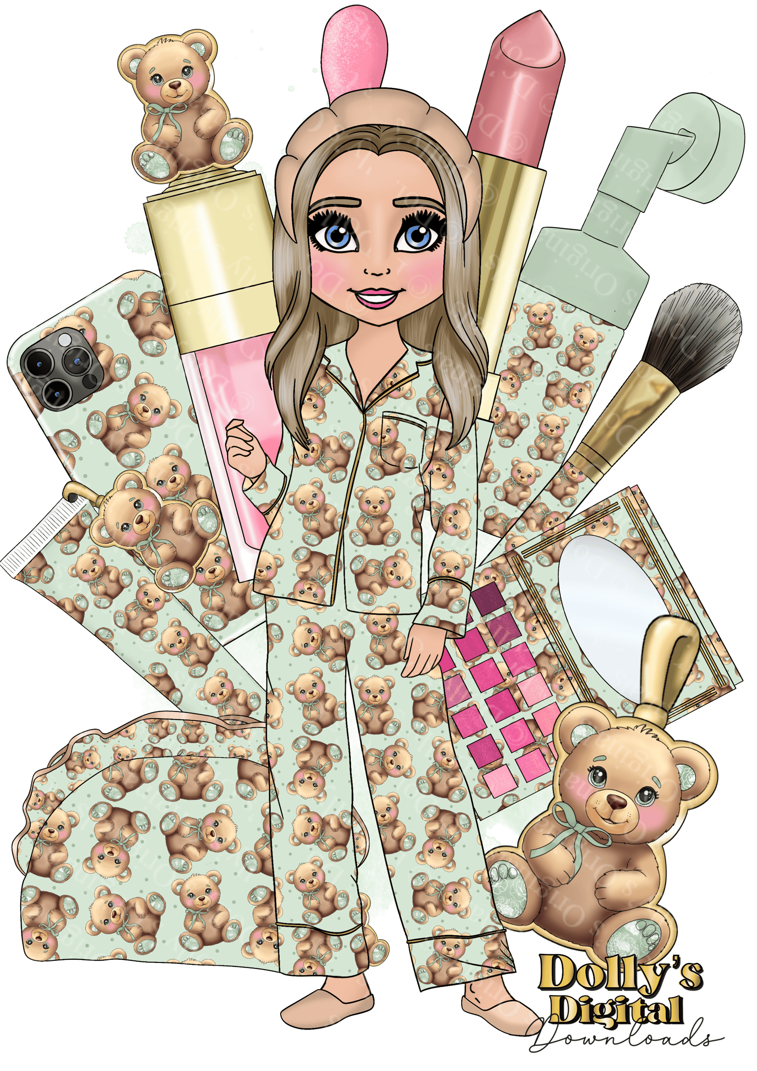 Instant digital download of our Sage Bear Makeup Dolly Character Bundle PNG (43 PNG’s)