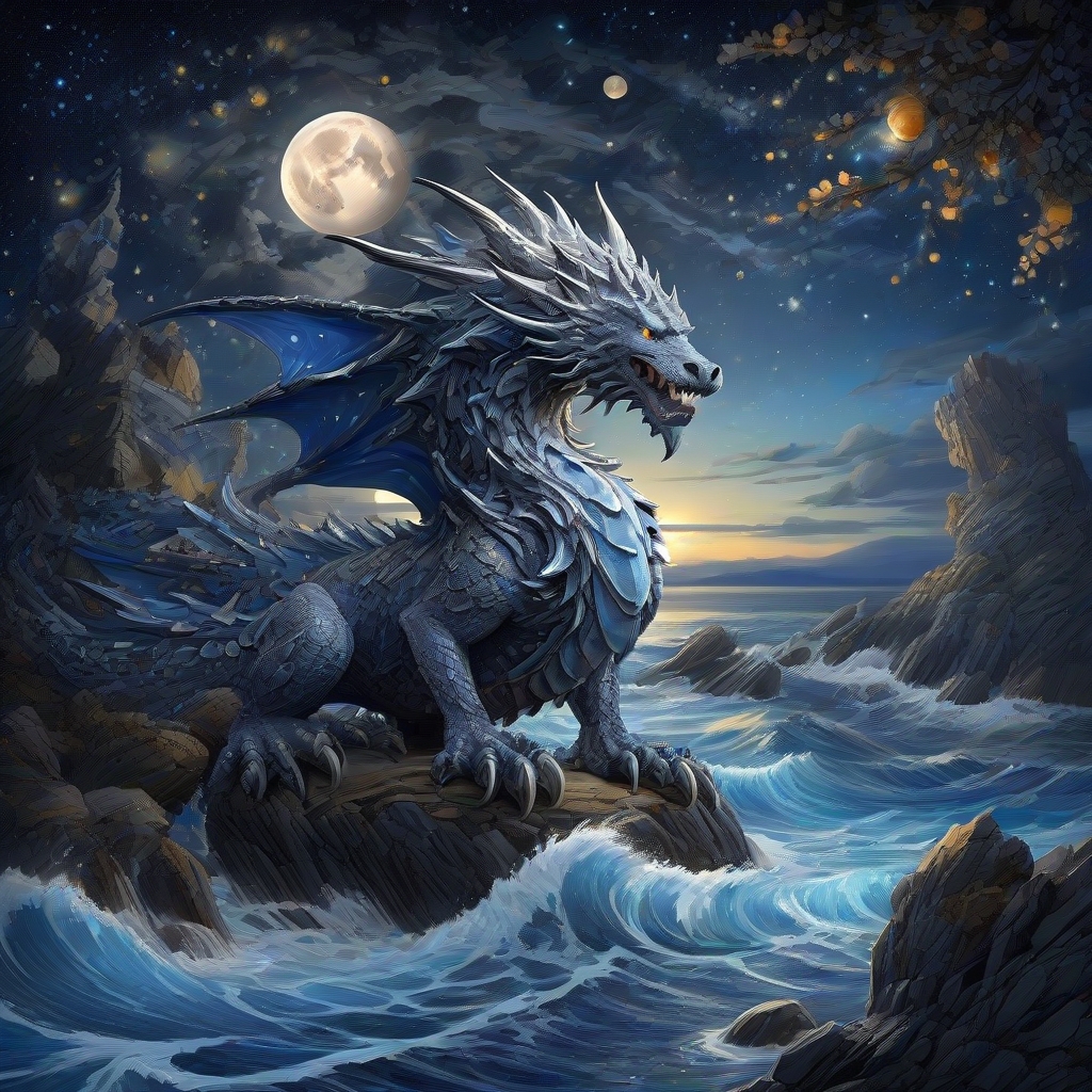 Gray Dragon Under a Full Moon