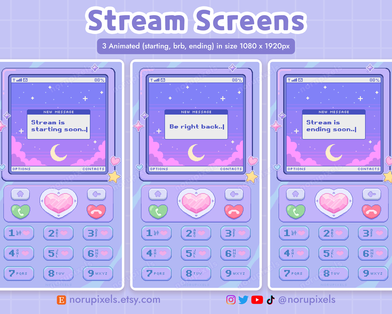 - 3 animated stream screens (starting, be right back, ending), each in .MP4 format (size 1080 x 1920px)