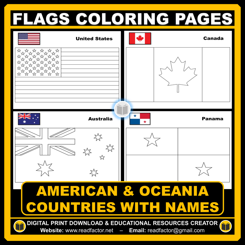 Let your kids or your class students Have fun learning about the countries of the Americas & Oceania with these flags coloring pages (Countries geographically located in America & Oceania).