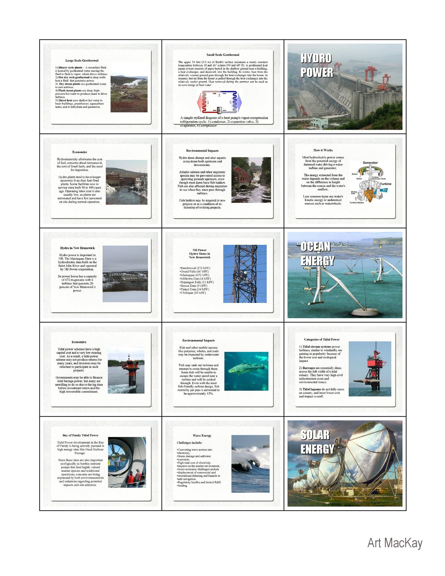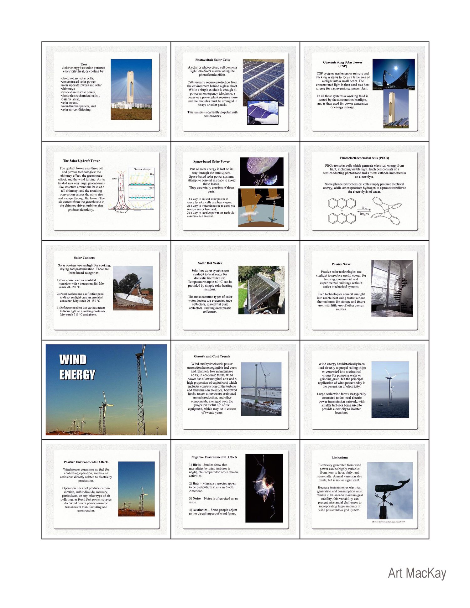The sun and heat from deep within the earth create sunlight, wind, tides and geothermal heat that generate electricity and heat through current technologies, including Solar, Wind, Ocean, Hydropower, Biomass & Biofuels, and Geothermal.