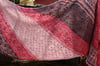 The shawl has an interesting construction, is worked in two pieces, and joined using the Kitchener method or similar. Initially with symmetrical increases create a top-down triangular shape, and then will continue with a bias section.