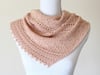 Gum Blossom is a pretty little triangle-shape shawl made with one skein of a plant-dyed merino nylon fingering/4 ply yarn from Gum Blossom Yarns. The embroidery stitch pattern, eyelet lace and a picot edge work together in this shawl to capture the botanical nature of gumnuts and eucalyptus blossom.