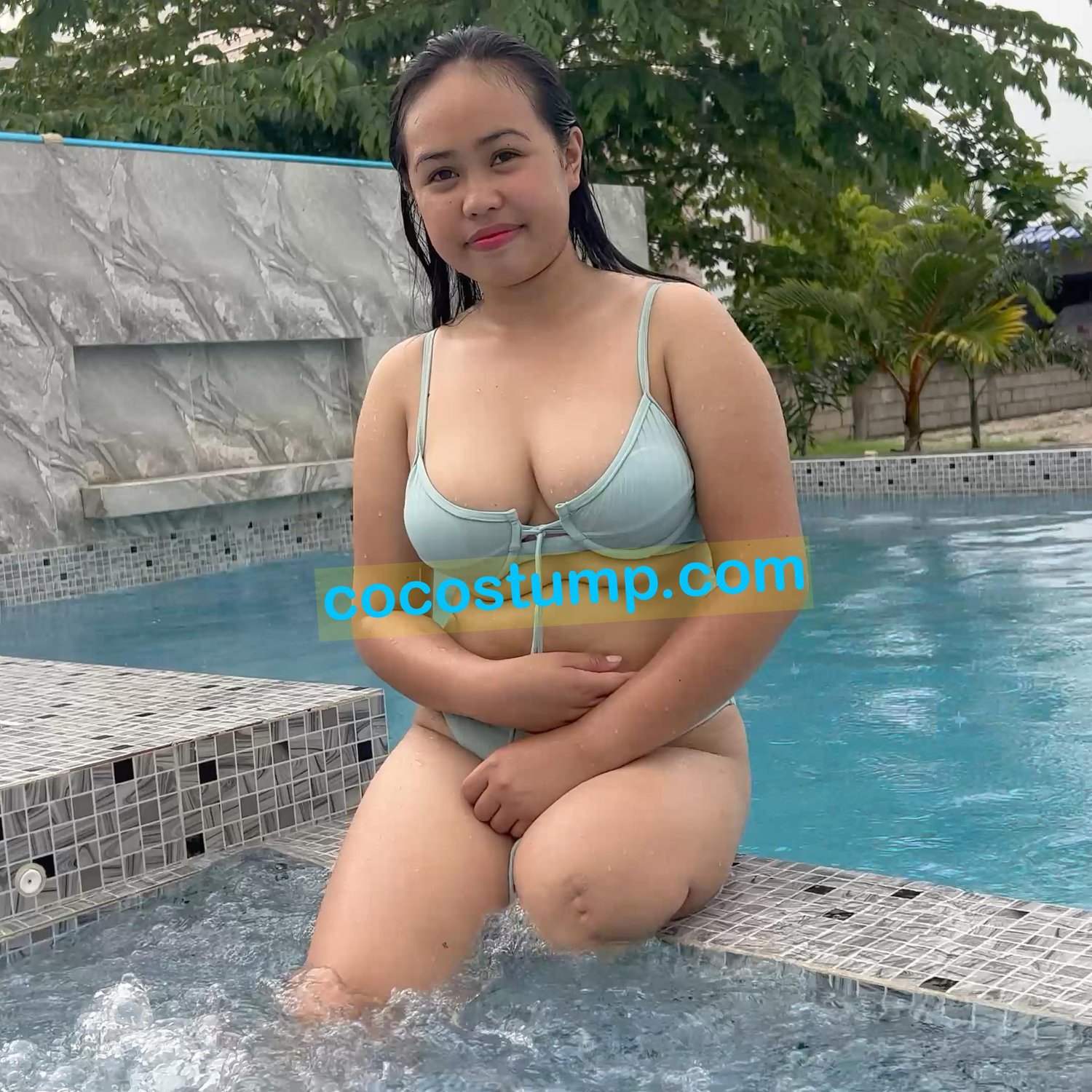 Marie blue bikini & pool
