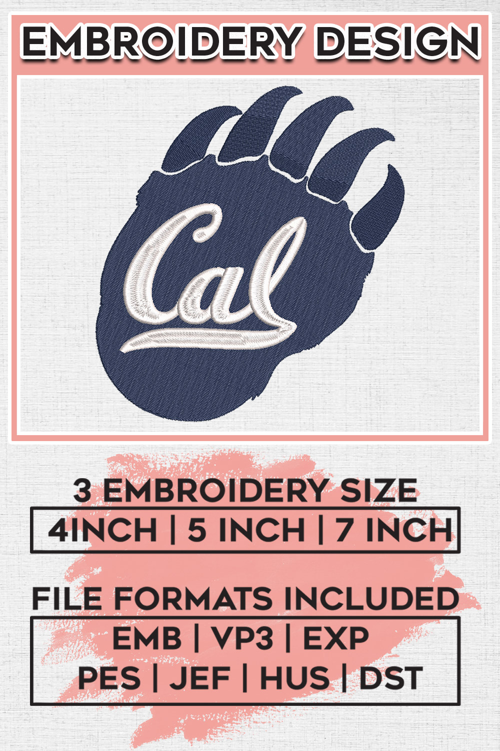 NCAA Cal Bears Football Team Footprint Logo Embroidery Designs, NCAA California Golden Bears Machine Embroidery Files, NCAA Logo embroidery designs, Ncaa Cal Bears Logo, Digital Download