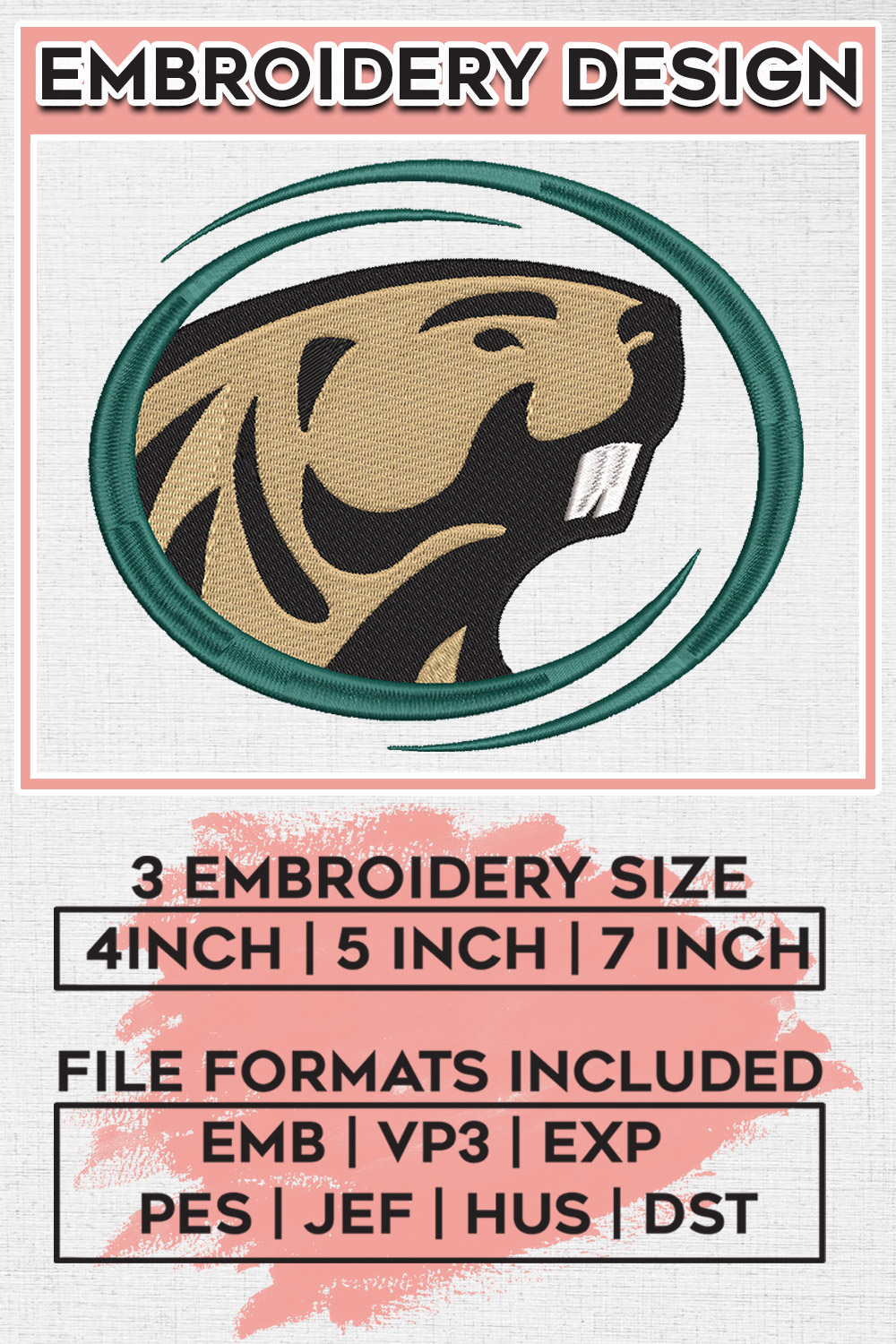 NCAA Bemidji State Beavers Team Mascot Logo Embroidery Designs, NCAA Bemidji State Beavers Machine Embroidery Files, NCAA Logo embroidery designs, Ncaa Bemidji State Logo, Digital Download