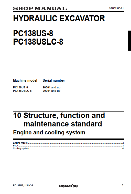 KOMATSU PC138US-8 SHOP MANUAL Serial: 20001-UP