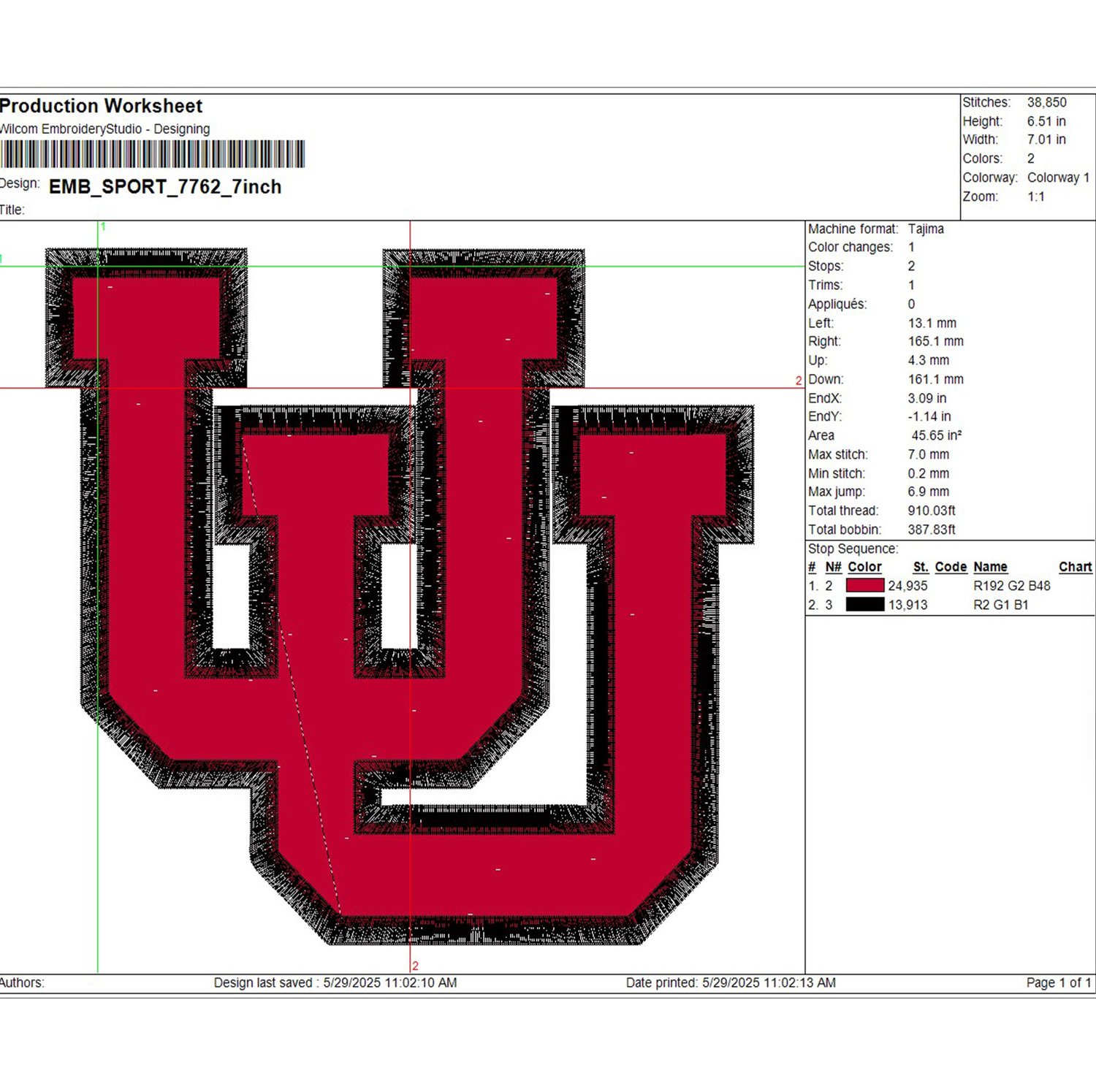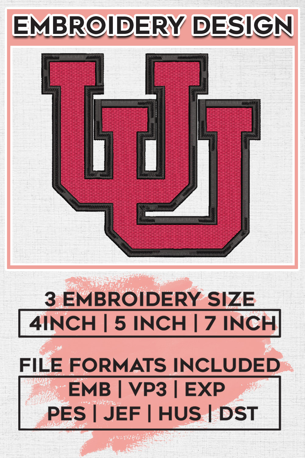 NCAA Utah Utes U letter Football Team Logo Embroidery Designs, NCAA Utah Utes Machine Embroidery Files, NCAA Logo embroidery designs, NCAA Utah Logo, Digital Download