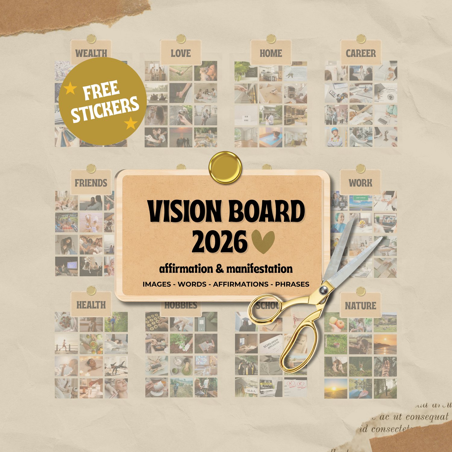 Ultimate 2026 Vision Board Kit: Digital & Printable Goal Planner with Affirmation Stickers