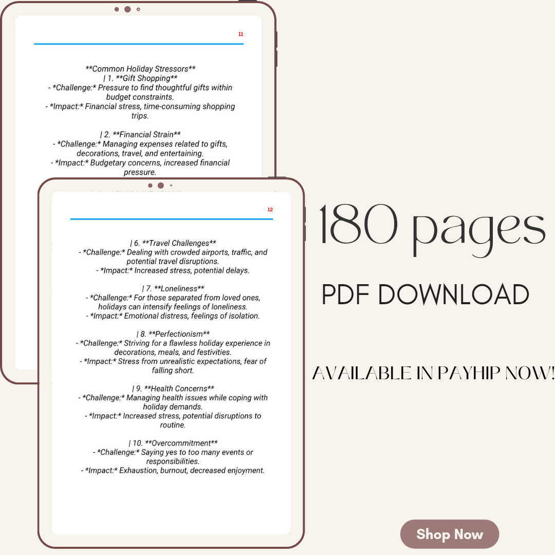 Discover the secrets to a serene and joyful holiday season with our comprehensive guide. From identifying stress triggers to mindful practices and self-care strategies, this ebook provides practical insights for a stress-free celebration. Embrace the spirit of the holidays with confidence, creating cherished moments and lasting memories. Your guide to a harmonious and fulfilling festive season awaits – embark on a journey to unlock the true joy of the holidays!