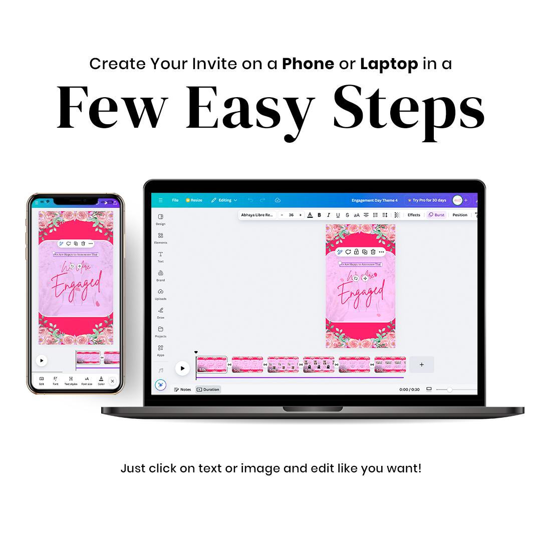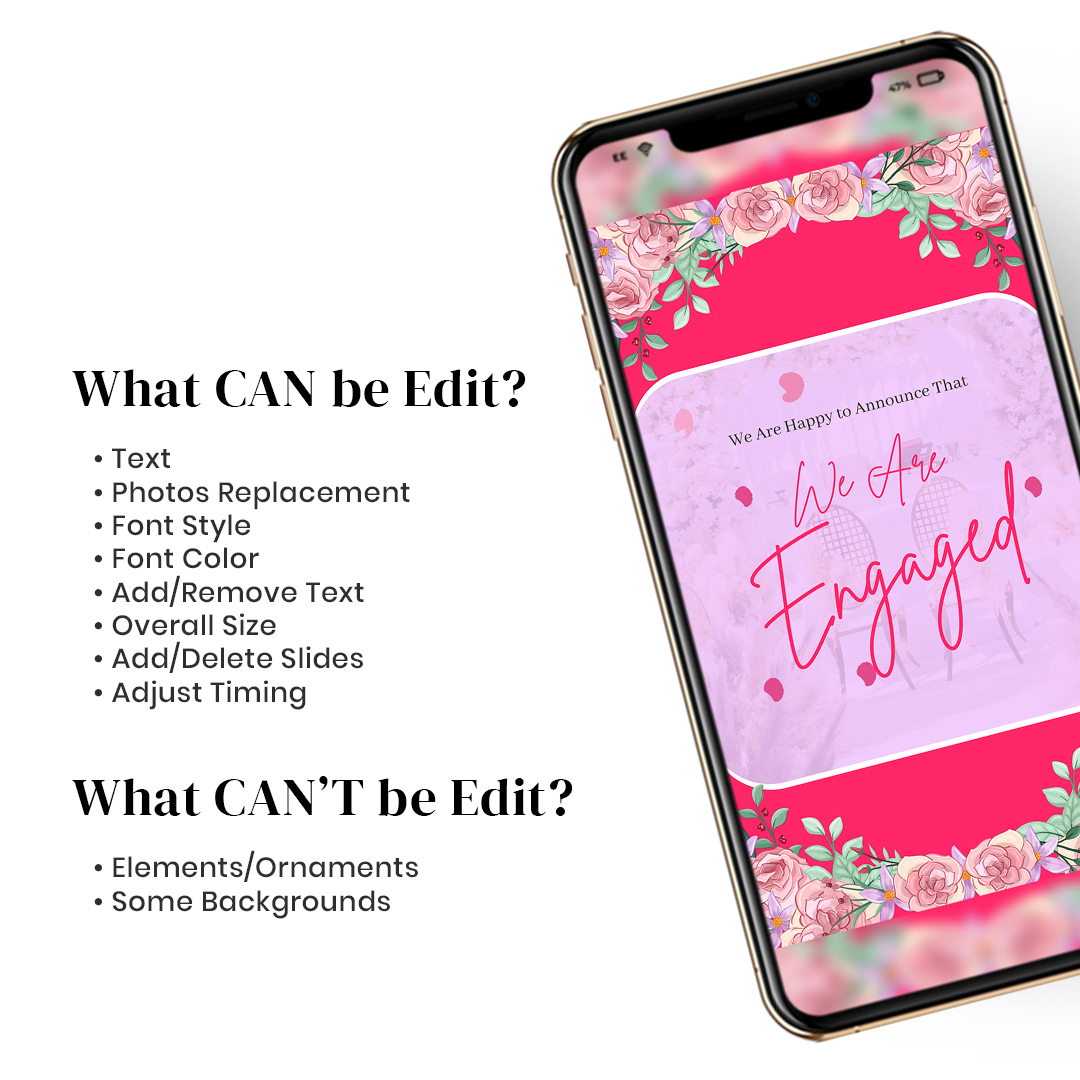 Invite your guests to celebrate your engagement in style with this unique and modern animated engagement party invitation template. With the ease of a video message, sharing is quick and convenient. This Canva template offers instant access with no installation required—perfect for spreading the joy of your upcoming celebration!