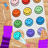 Happy Face stickers in bright rainbow colors. Print on sticker paper, or you can print on regular paper and use a glue stick. Great for kids, classrooms, parties, planners, and so much more.