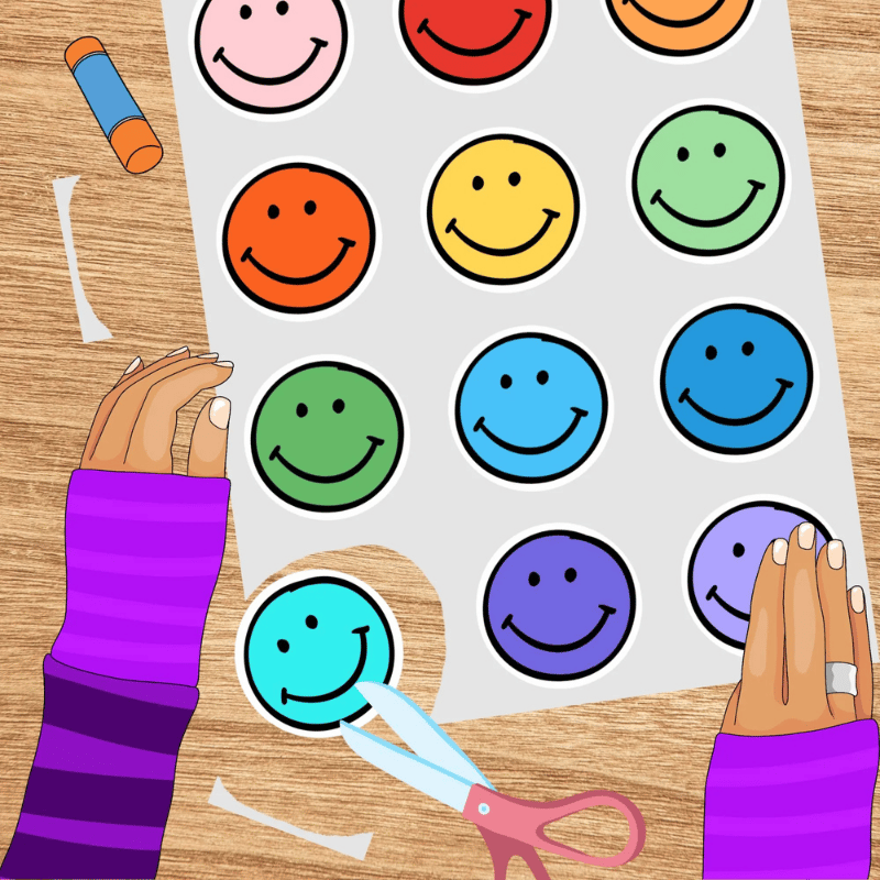 Happy Face Printable Sticker Sheet Transparent PNG Colorful Clip Art
