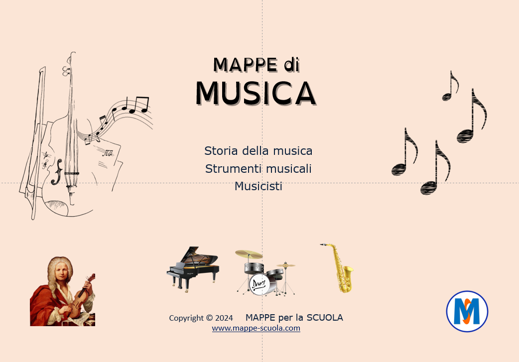 PDF di 30 pagine complessive. Mappe concettuali di musica per la scuola secondaria di I° grado (scuola media). Facilità di stampa e di visualizzazione.