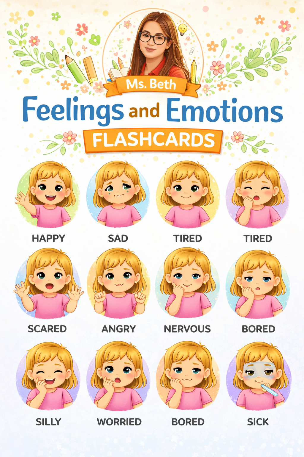 Help little learners understand and express their feelings with this fun and engaging Feelings and Emotions Flashcards set 🌸