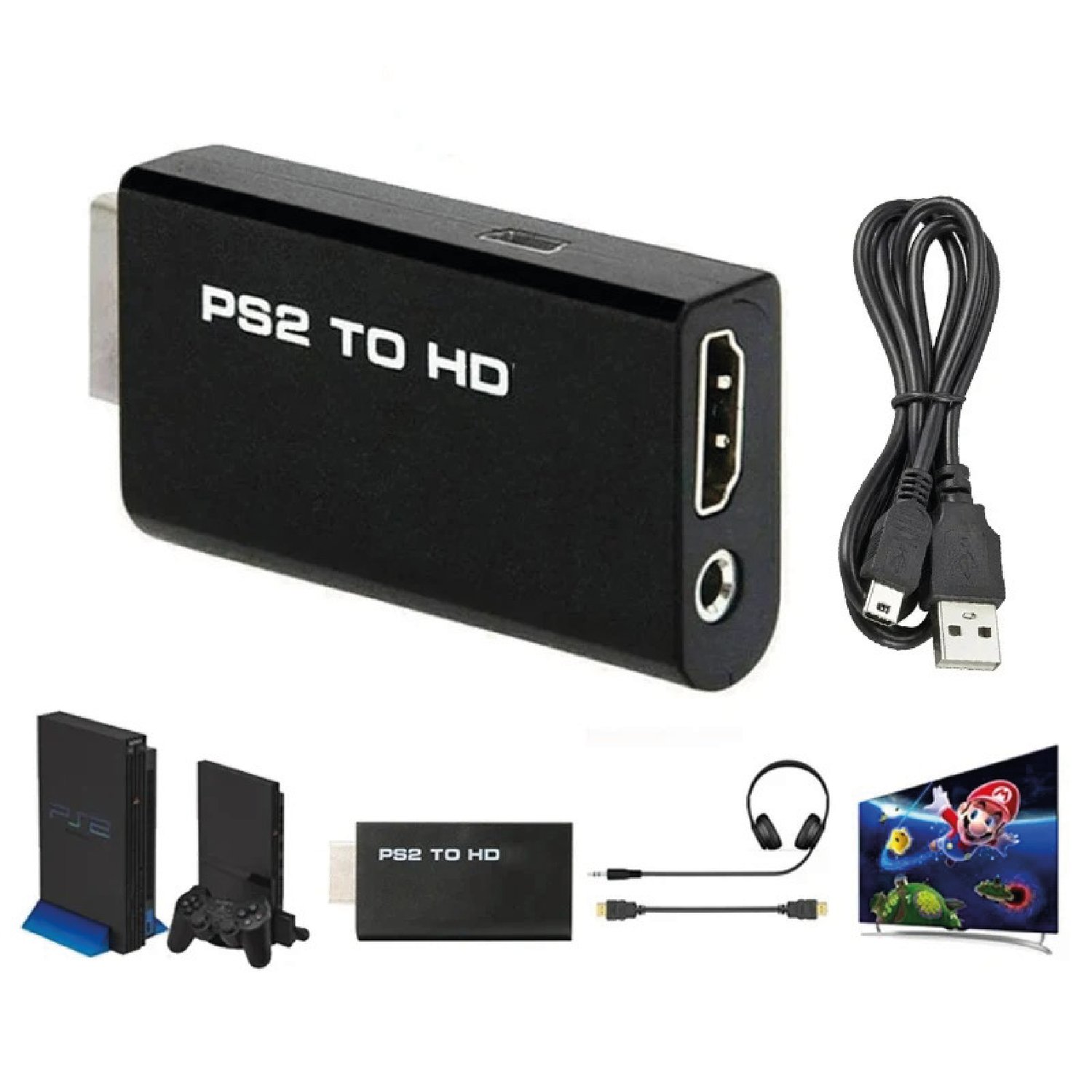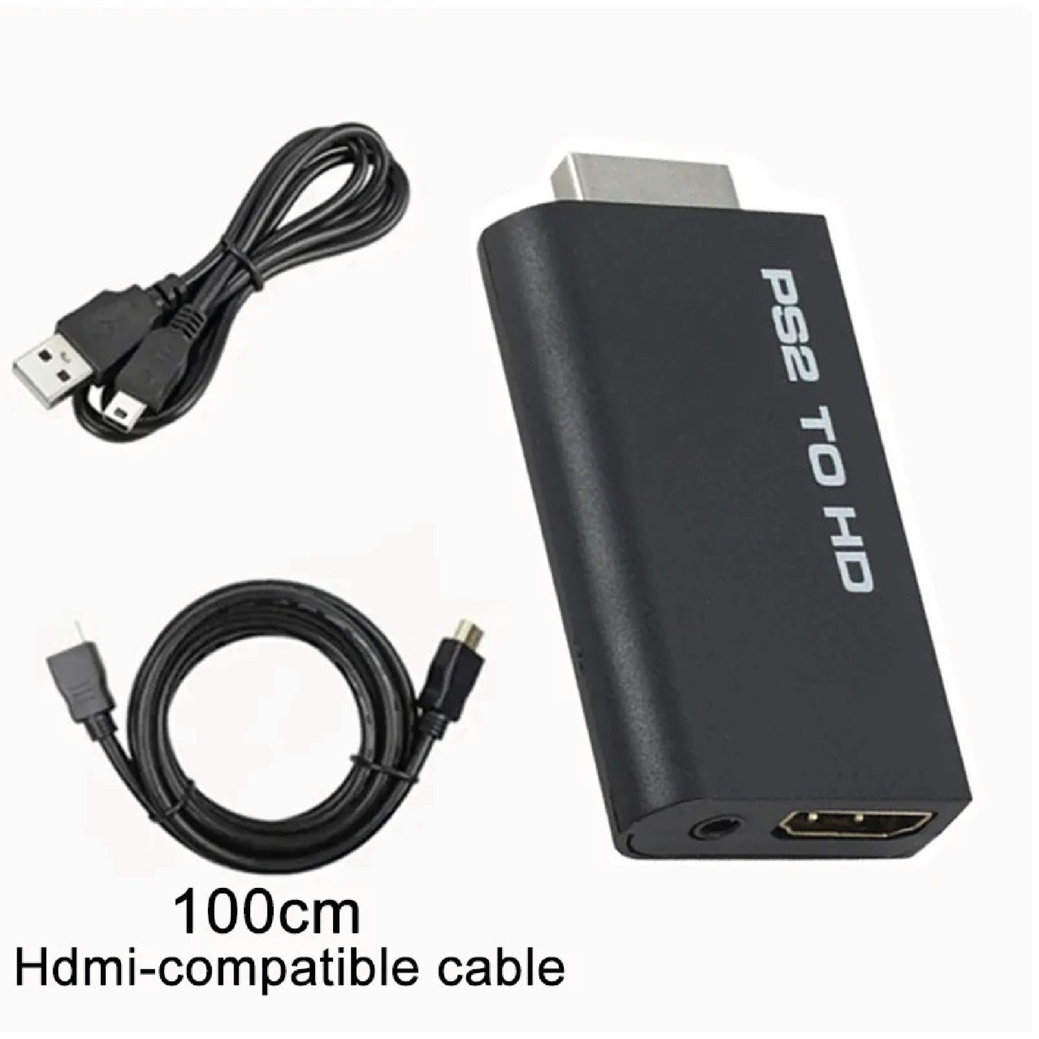 Adaptateur PS2 vers HDMI + Audio 3,5 mm + Câble HDMI – Compatible 480i/480p/576i