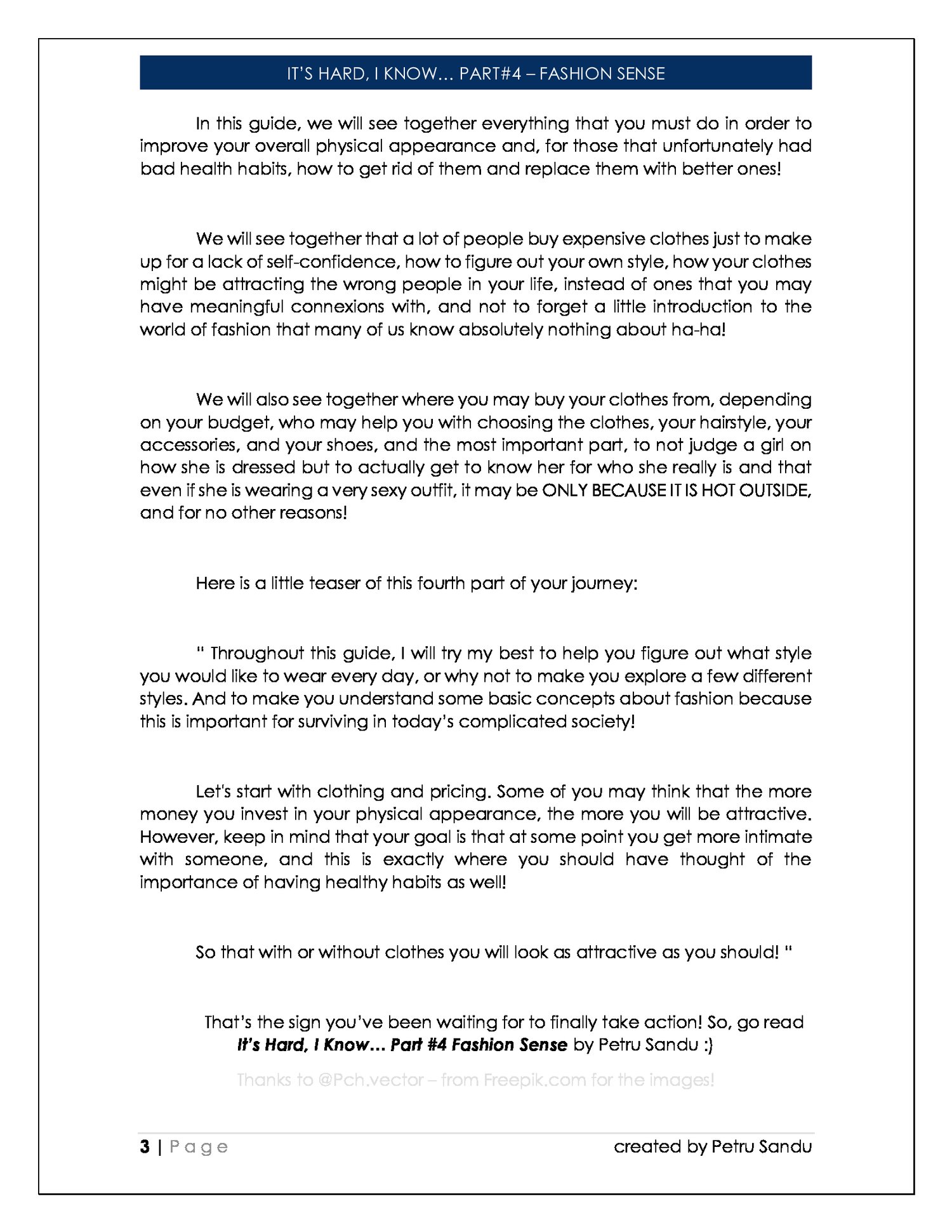 - BONUS for those who read Part #3; You will be able to BOOST even further your real self-confidence by IMPROVING your overall looks and get to choose how you will want your future self to look like because all the theory and tips related to this topic are included in this guide!