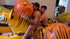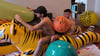 In this video Nelson and Kyllan ride an inflatable world tiger.