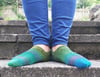 The Adventure Shorties can be worked from the toe up or cuff down with an afterthought swirly heel and a choice of two different stitch patterns. The pattern is written for the Magic Loop Technique - link to tutorial here. Pattern includes links to useful tutorials.