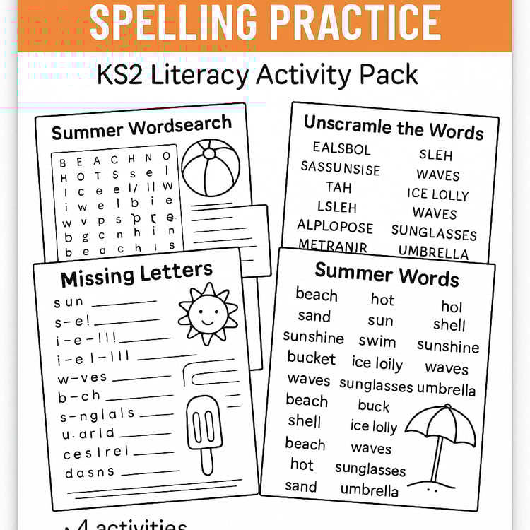 This practical summer-themed pack includes KS1-friendly word banks and differentiated writing frames to boost sentence construction, vocabulary, and descriptive language.