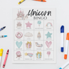 Unleash the magic of playtime with our enchanting Unicorn Bingo Game! Perfect for birthday parties, family game nights, or cozy afternoons, this handcrafted game invites players of all ages to join in the fun. Our delightful bingo cards feature vibrant, whimsical illustrations of unicorns, rainbows, and magical landscapes, sure to capture the hearts and imaginations of children and adults alike. The bingo comes with 20 uniquely designed bingo boards, 340 unicorn markers, and high visibility calling cards, ensuring endless hours of entertainment!