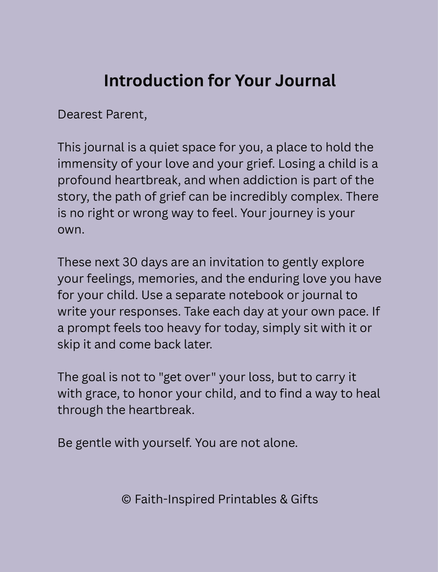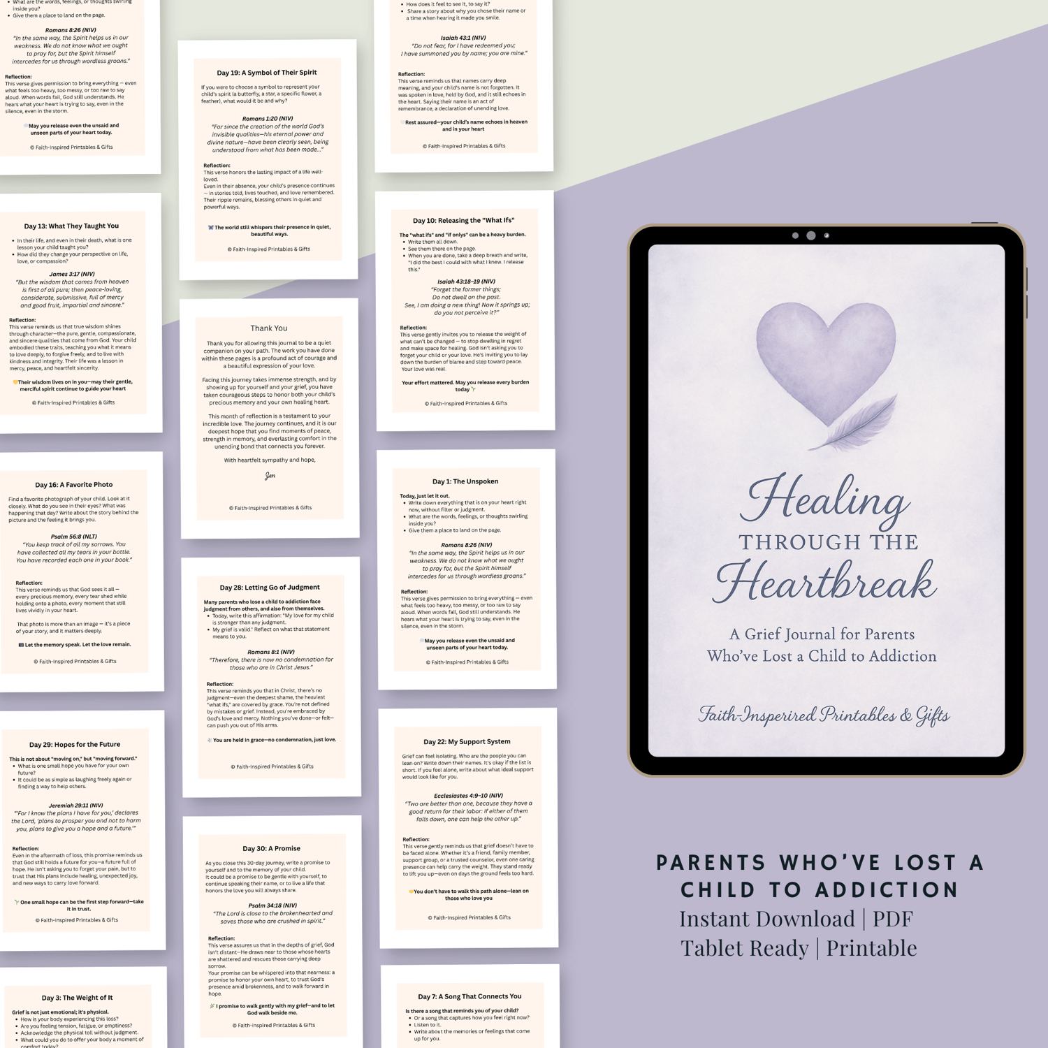 Healing Through the Heartbreak – 30‑Day Grief Journal for Parents Who’ve Lost a Child to Addiction (Digital Download)