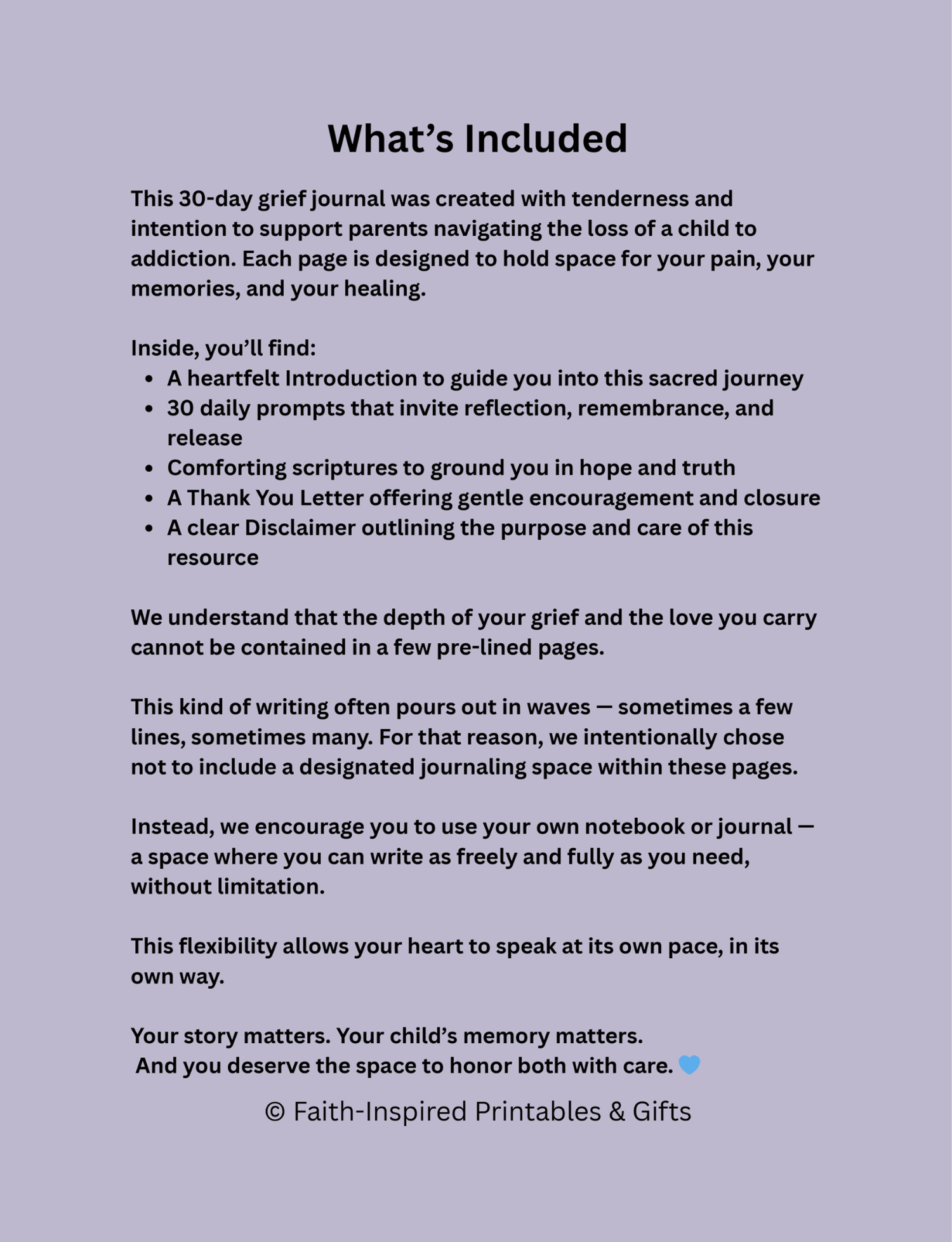 - A Personal Keepsake — A sacred record of your journey, your healing, and the love that endures.