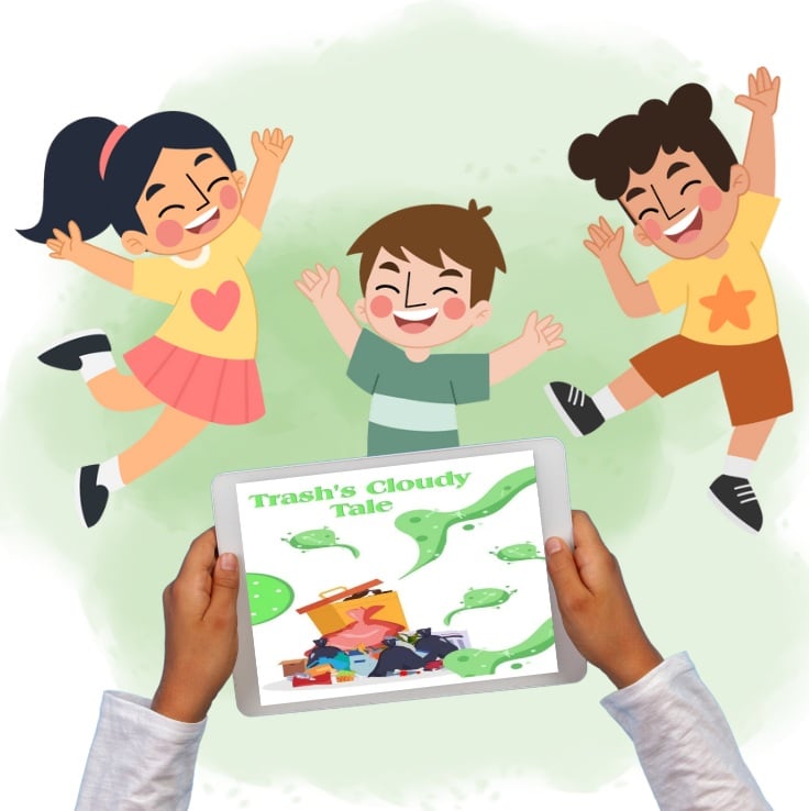 Trash's Cloudy Tale follows Cheekoo, a lonely girl troubled by litter’s “cloud.” Through gentle storytelling and collage art, children learn waste responsibility, reuse, and caring for their environment—empowering families to build everyday eco-habits together.