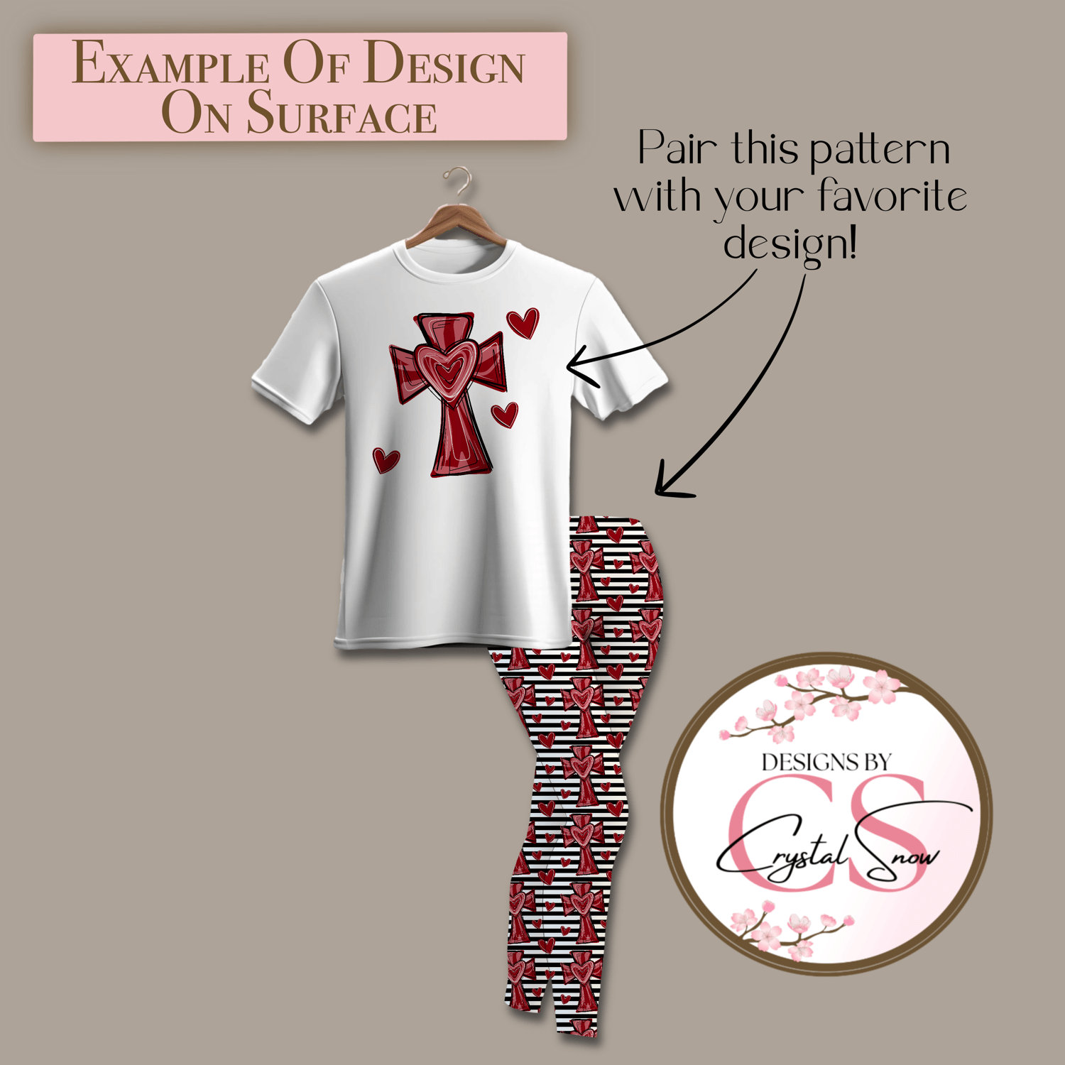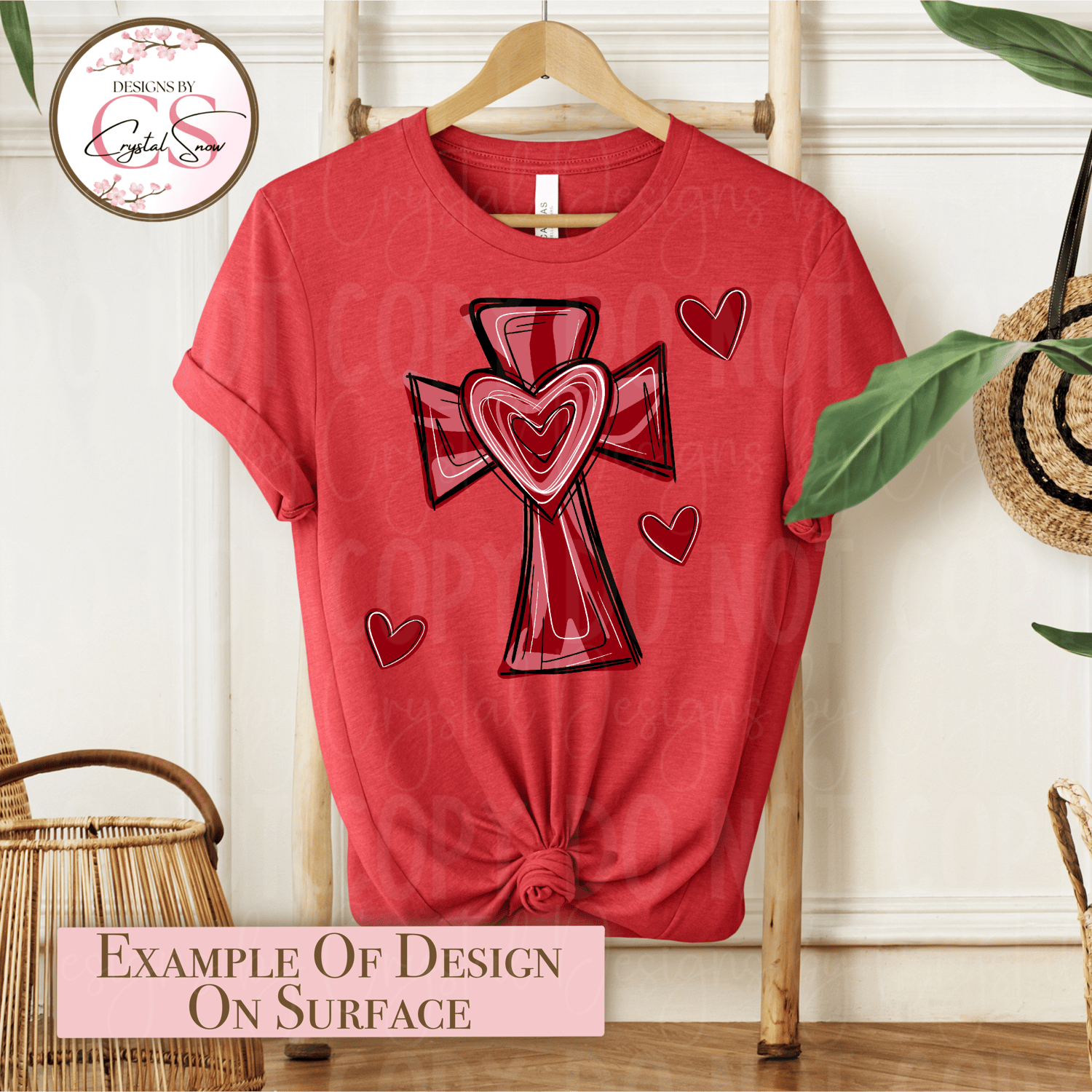 This hand-drawn Cross of Love PNG features a layered red cross with heart details, created to complement the matching seamless pattern without overpowering it. It’s ideal for pairing designs like shirts + leggings, tees + tumblers, or coordinating Valentine sets.