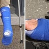This father of a family comes to the clinic for a check-up on crutches and with a cast on his foot. As we later found out, he had an accident in the trampoline hall and broke his foot there.