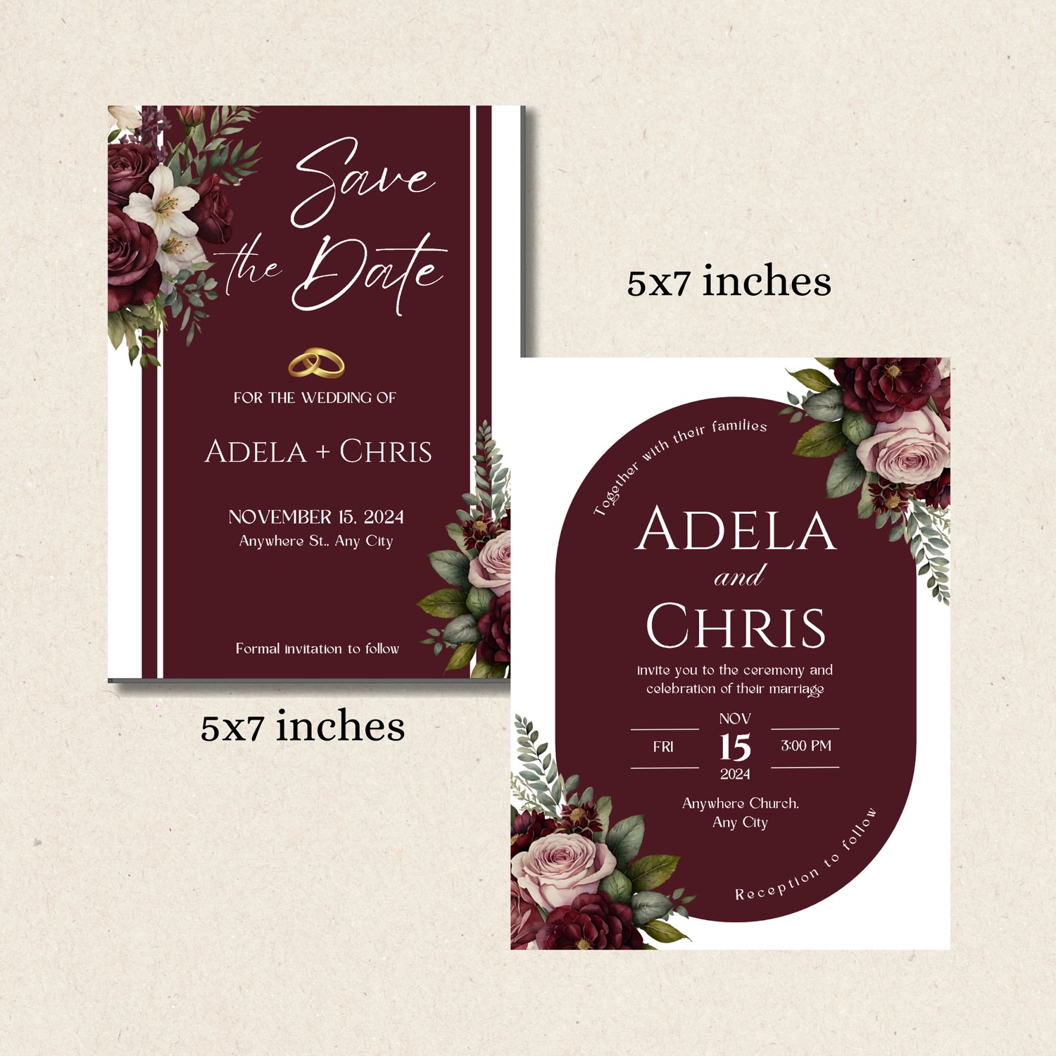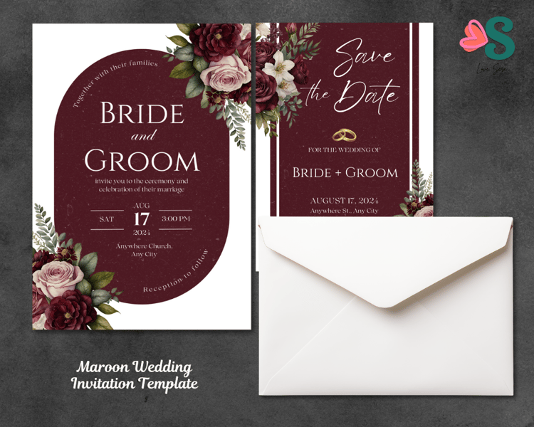 Maroon Wedding Invitation Template, Burgundy Wedding Invite