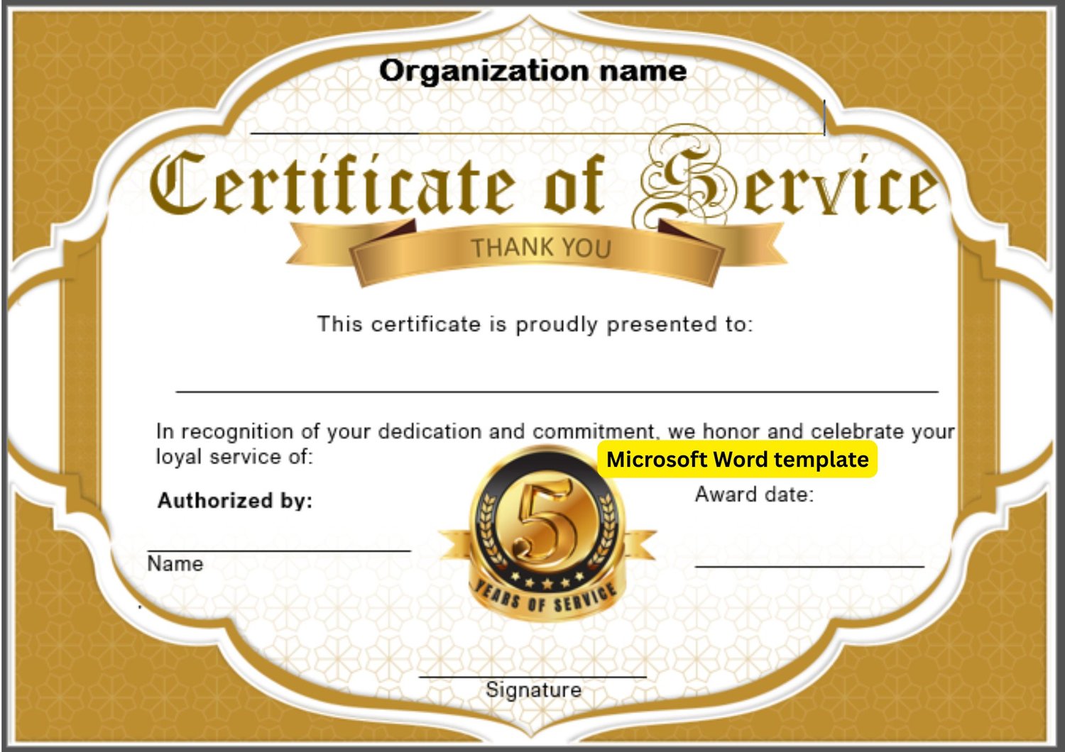 Celebrate a milestone achievement with our stunning "5 years Certificate of Service" template.