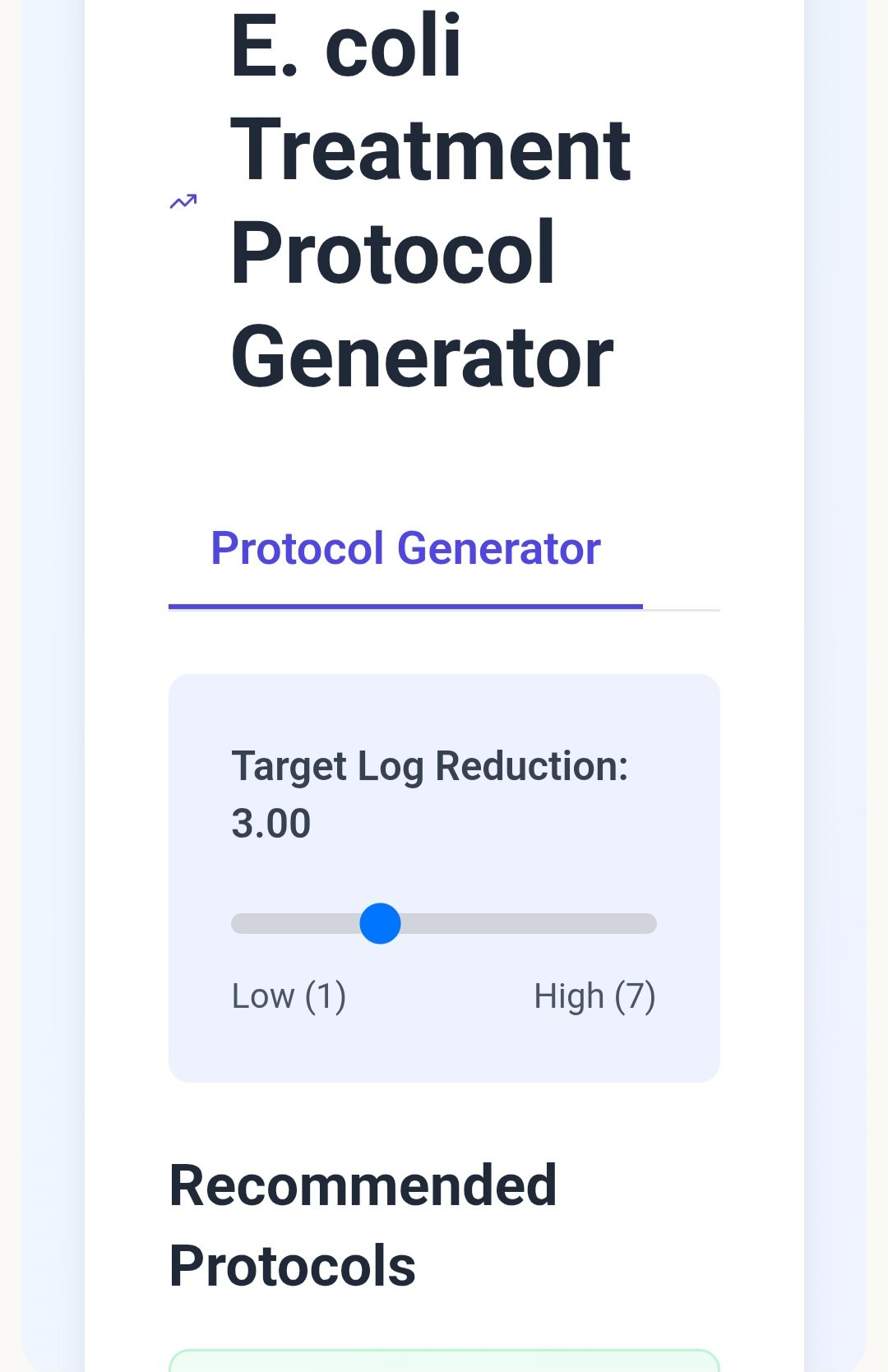 E-coli treatment protocol generator app