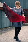 In jazz music, vamping is playing the same short phrase over and over; in this shawl you create a glamorous vampy piece by working a simple syncopated eyelet repeat on a wrap with an intriguing shape. Knit asymmetrically from side to side, the long gradient color change builds slowly as it expands with the shawl.