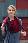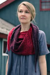 Yarn: KnitCircus Yarns Lavish (70% superwash merino wool, 20% cashmere, 10% nylon; 600 yards/548m/170g); 1 skein, shown in Vampire Boyfriend. The sample as written used approximately 585 yards, but instructions are included to customize your shawl for different amounts of yardage.