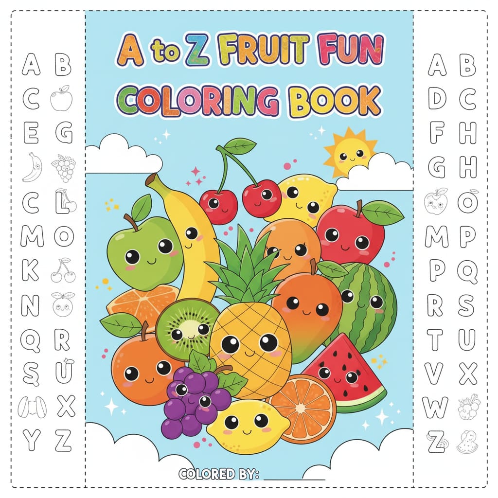 kids coloring book, printable coloring book, fruit coloring pages, A to Z coloring book, alphabet coloring book, preschool learning, toddler activity book, educational printable, digital coloring book, colouring pages for kids, early learning, fruit activity, fun learning printable, kids printable art, creative coloring,drawings book, drawing book for kids,