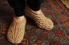 Wisp Slippers are a cozy project for winter knitting and work up quickly in bulky weight yarn. The efficient one-piece construction means just two ends to weave in per slipper, and no seaming! You’ll start by knitting a tab at the back of the heel, pick up stitches and knit flat along the ankle opening, and then join in the round for the rest. Hold your bulky weight yarn with a strand of laceweight mohair for extra coziness!