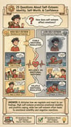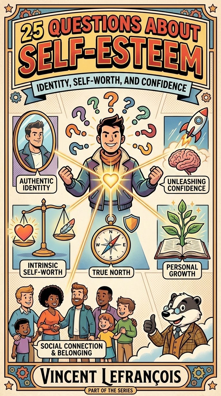 25 Questions About Self-Esteem is a beautifully illustrated educational book that explores how people build their sense of self-worth, how self-esteem develops, and how it influences emotions, relationships, and life choices.