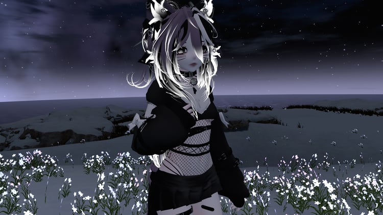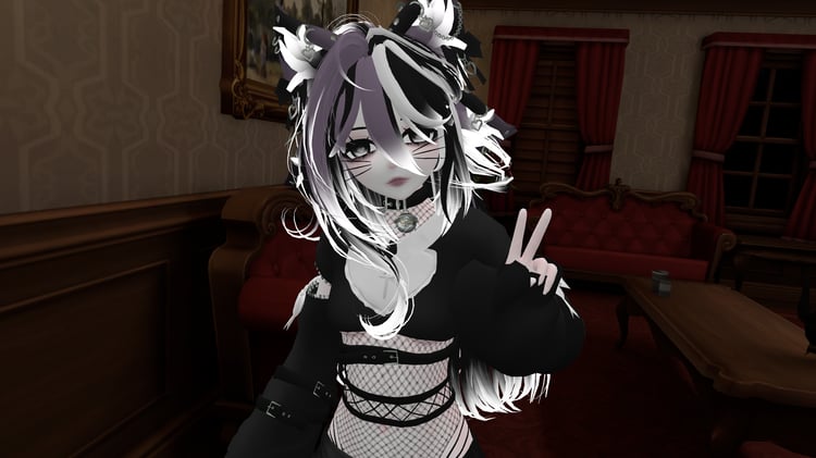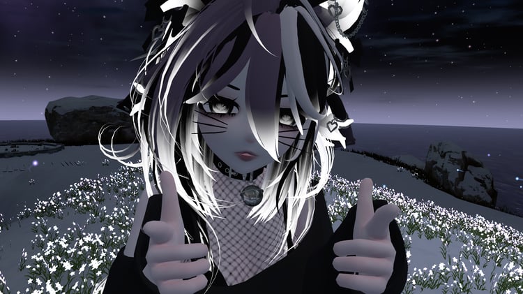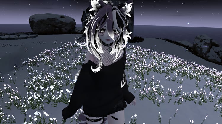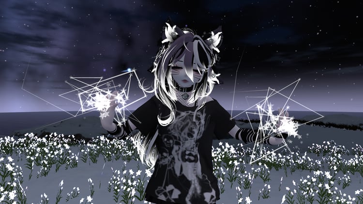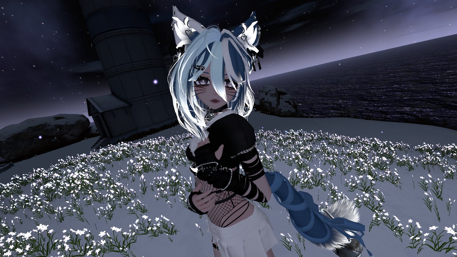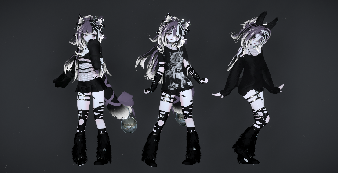 Head- CicieaaaVr, Body- NikkiePNG , Bottom Lashes- Sivka , Eye Texture- Ezra, Short Hair- Saikura , Arm Bandages- Bugs, Bikini and Bodysuit- Tilly , Thigh Bandage- Wen, Bandaids, Whiskers - YamuVR , Main Hair, Braids, Tied up Bangs- Nessy, Skirt- Hoeyume , Bra, Waist Band, Collar, Arm Ruffles- Fooly , Strap Garter, Shorts- Kri, Main Long Bangs- Apyr , Bunny Set- Novapie , Loose Bangs, Ponytail- Velvet , Onesie- ssukiii, Shirt- Vodkabuffet, Star Garter- Safie, Sweater- Zoxl, Cat Ears and Tail- Pixelhaven, Arm Warmer, Leg Warmers, Top- Miruu, Boots- Darcy, Flow Toy-- Gms, Finger Trails- Zett121, Star Particles- creationsofmegan, Gogo Loco- Franada, Marker- VRLabs, VRCFury