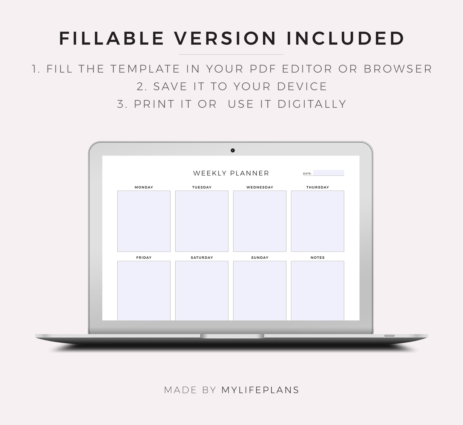 This is a printable weekly planner — just download, print, and start using it right away.