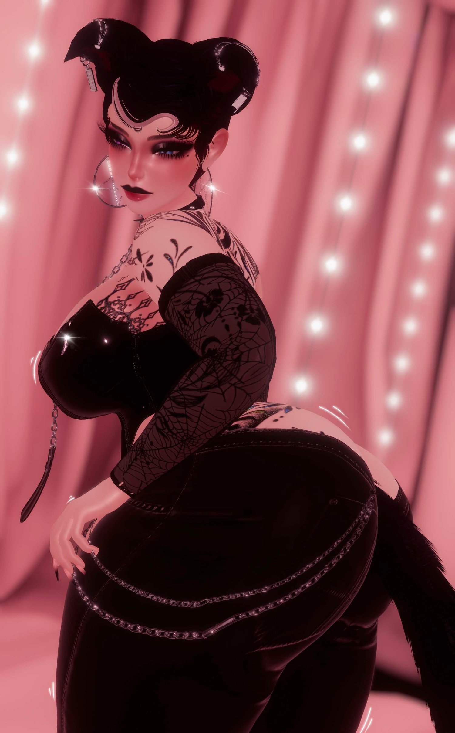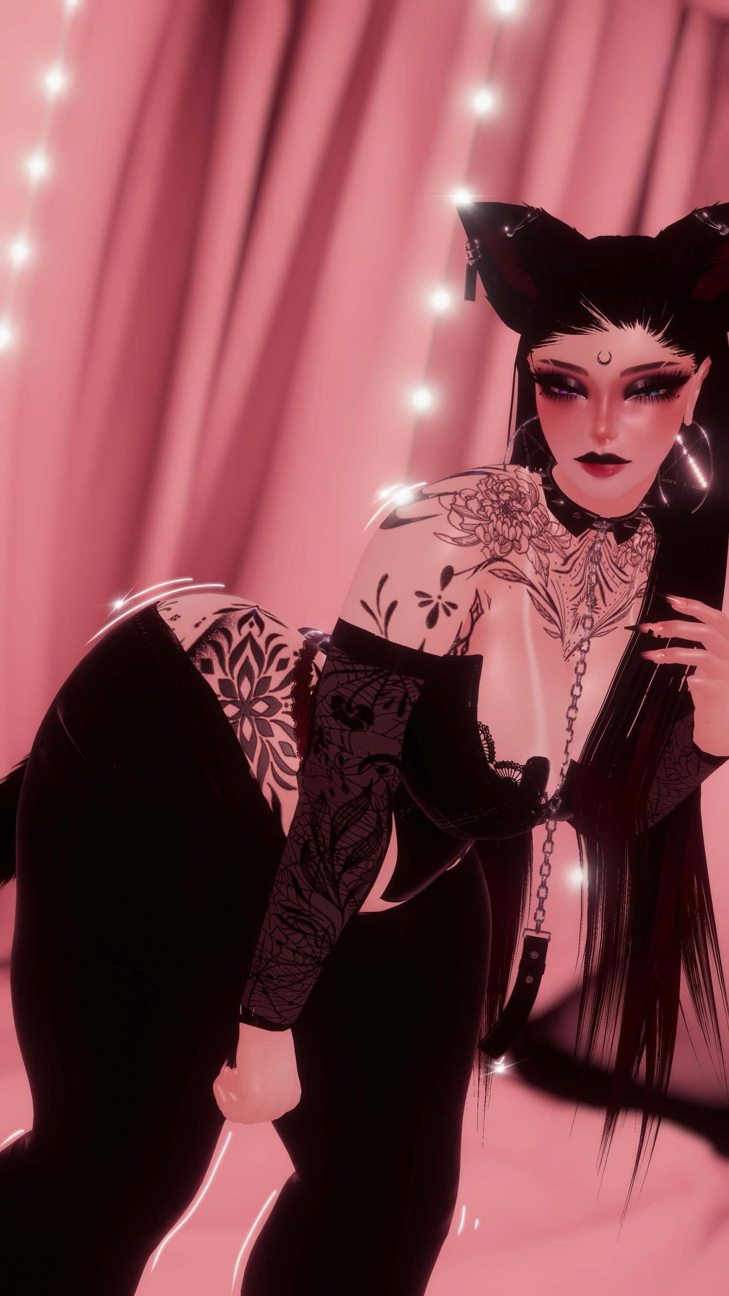 Credits: Body (MY EDITS NO REUSE) | Head (MY EDITS NO REUSE) | Tan lines | Tattoos | Makeup | Lingerie | Hair 1,3.4 | Blow Out Hair | Clothes, shoes, panty line, and dress sleeves | Cuffs, Ears, Tail, and Choker | Fishnet Set | Hand Particles | Posing System | World Particles (I could not find a active store link to give, if anyone finds it please make a ticket in my server)