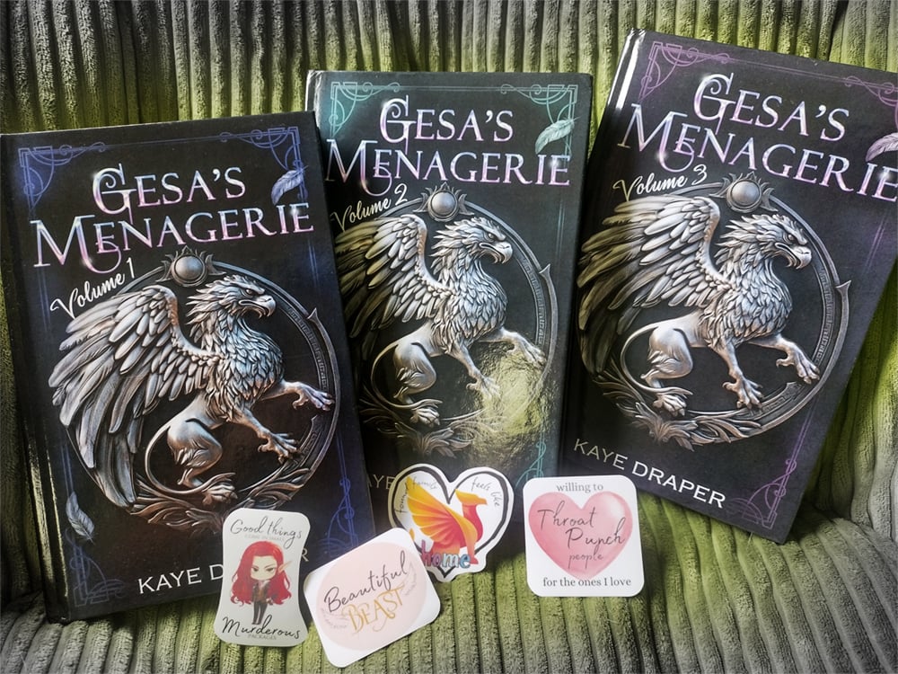 Three-volume special edition of my quirky, steamy outside the box reverse harem series, with full-color art and special formatting. Please read important details below, as two copies have some minor imperfections. (All exterior, no interior flaws). Includes four themed, handmade vinyl stickers.