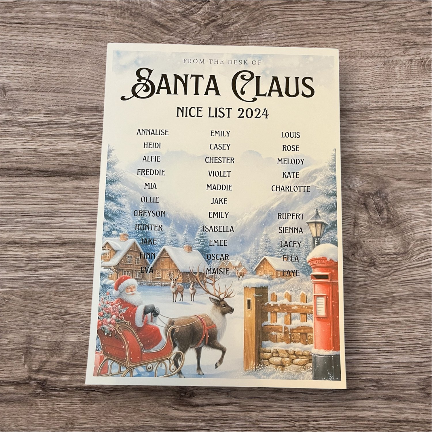 Letter from Santa and Certificate set. Printed on A4 card. Includes Certificate, letter from santa, nice list and info.