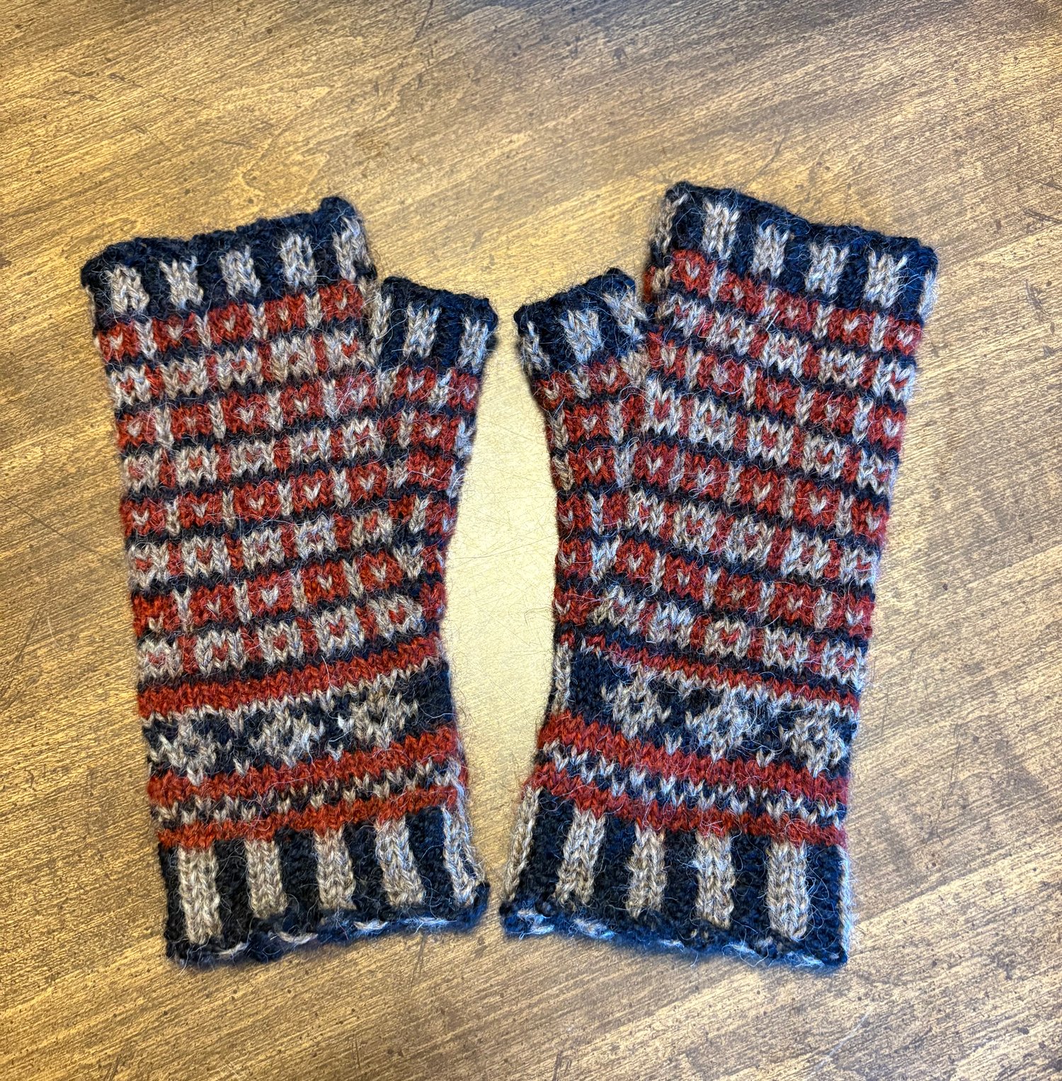 6.5 (7.5, 8.5) in/ 19cm hand circumference; change needles sizes to change circumference