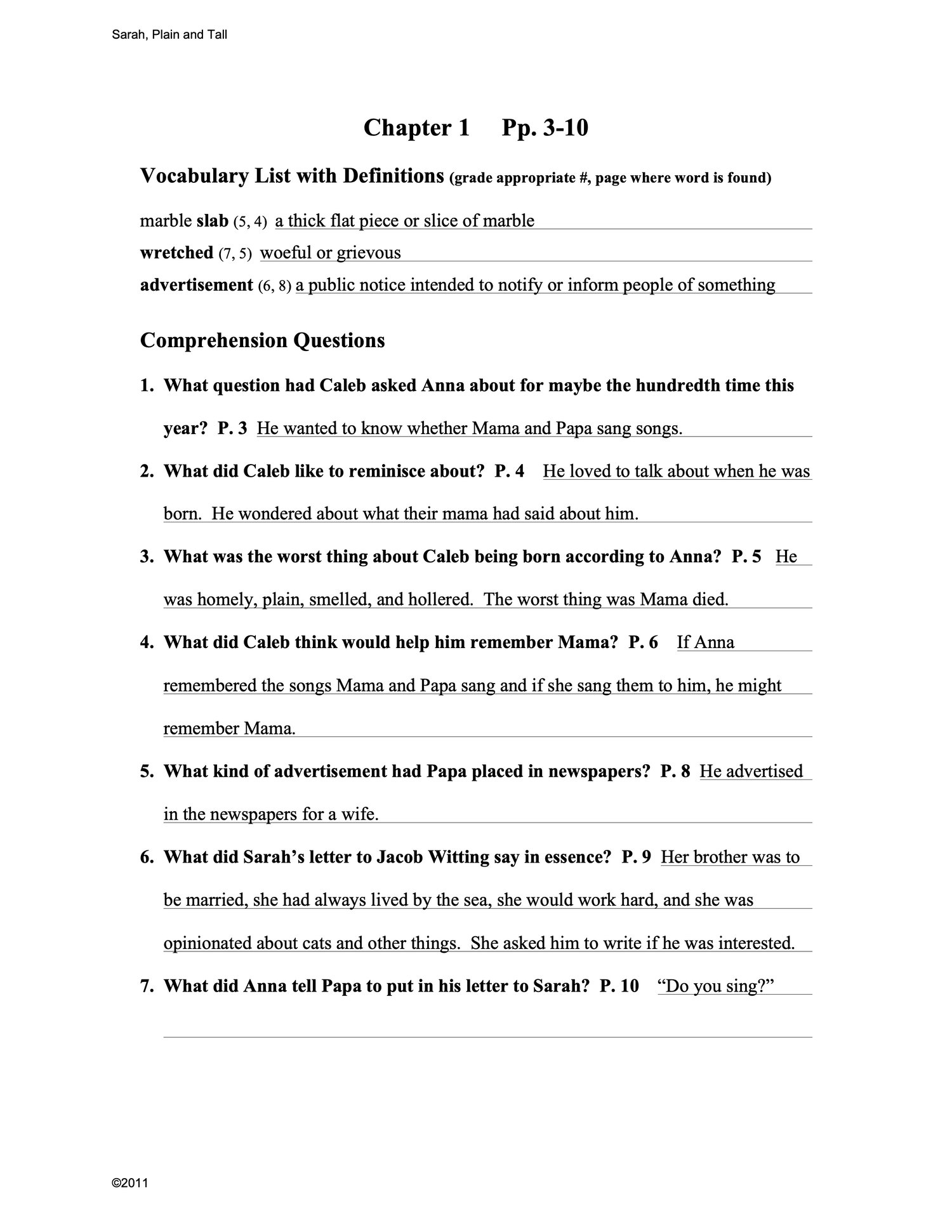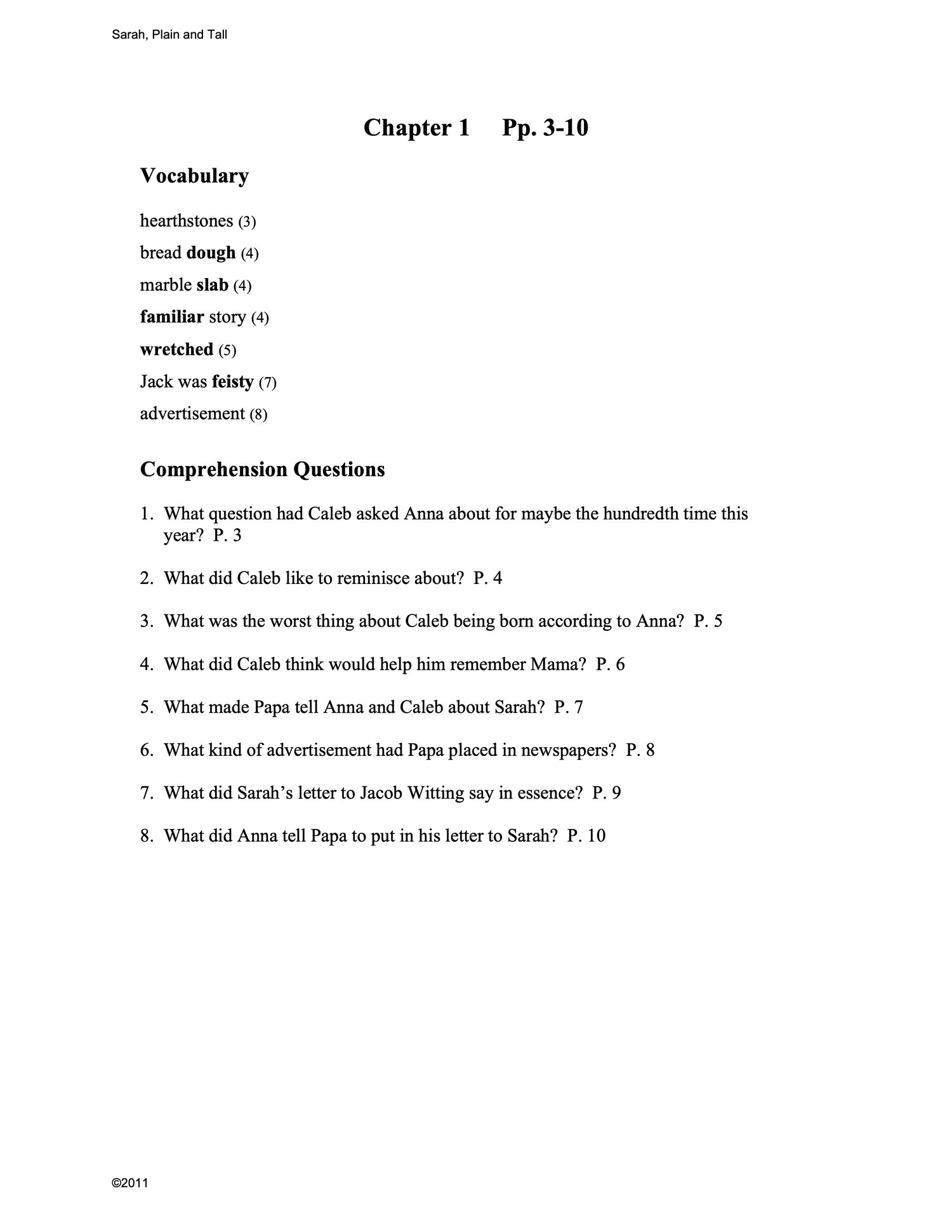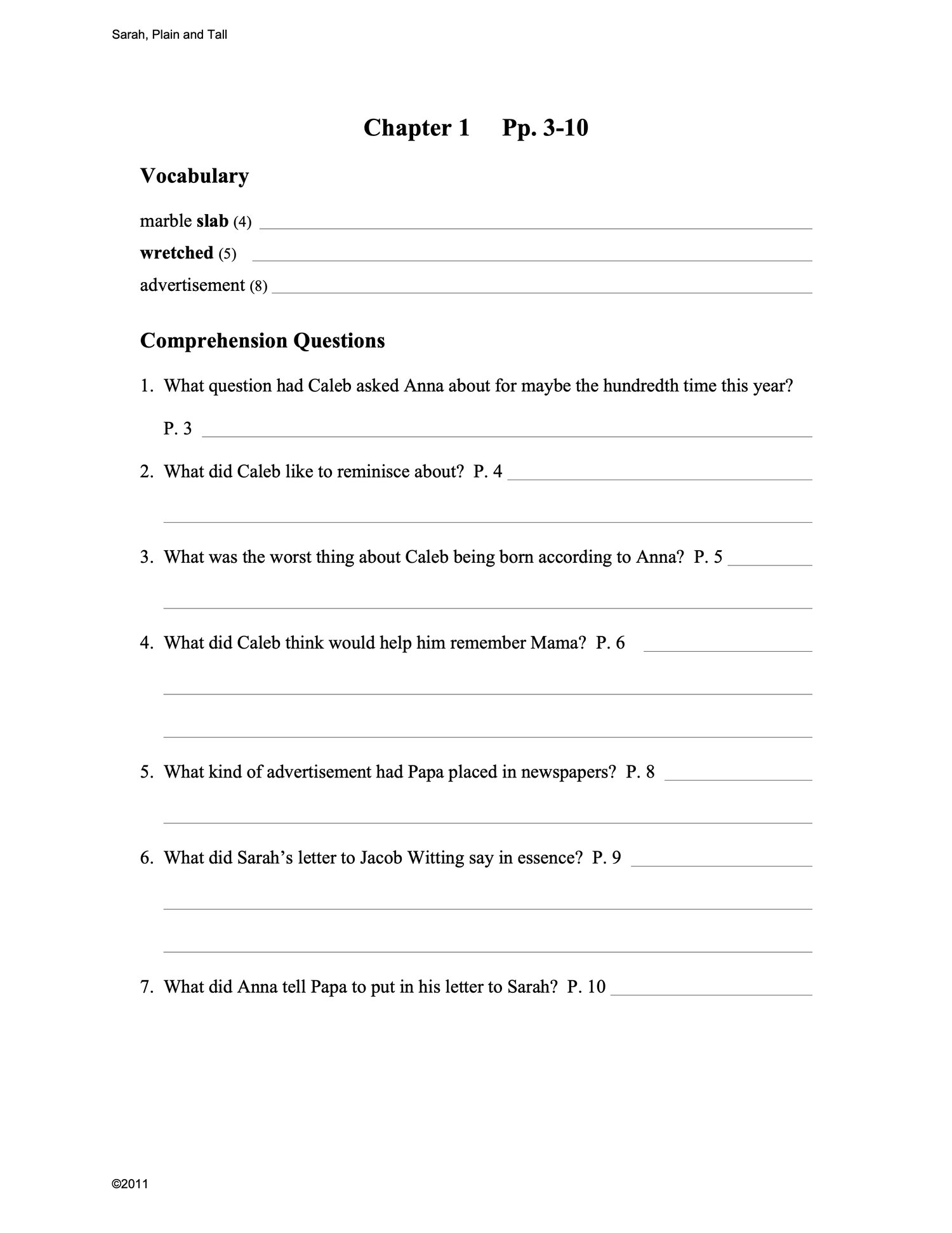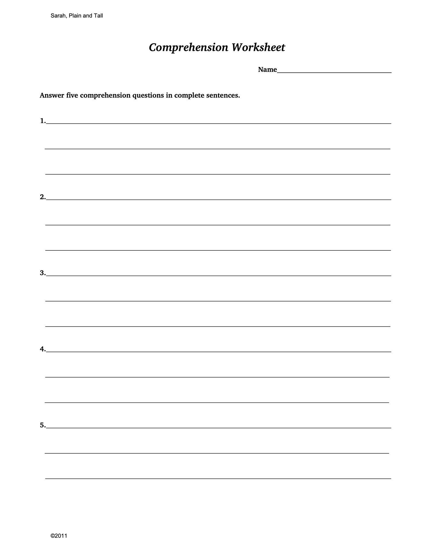 Sarah Plain and Tall Reading For Comprehension Workbook