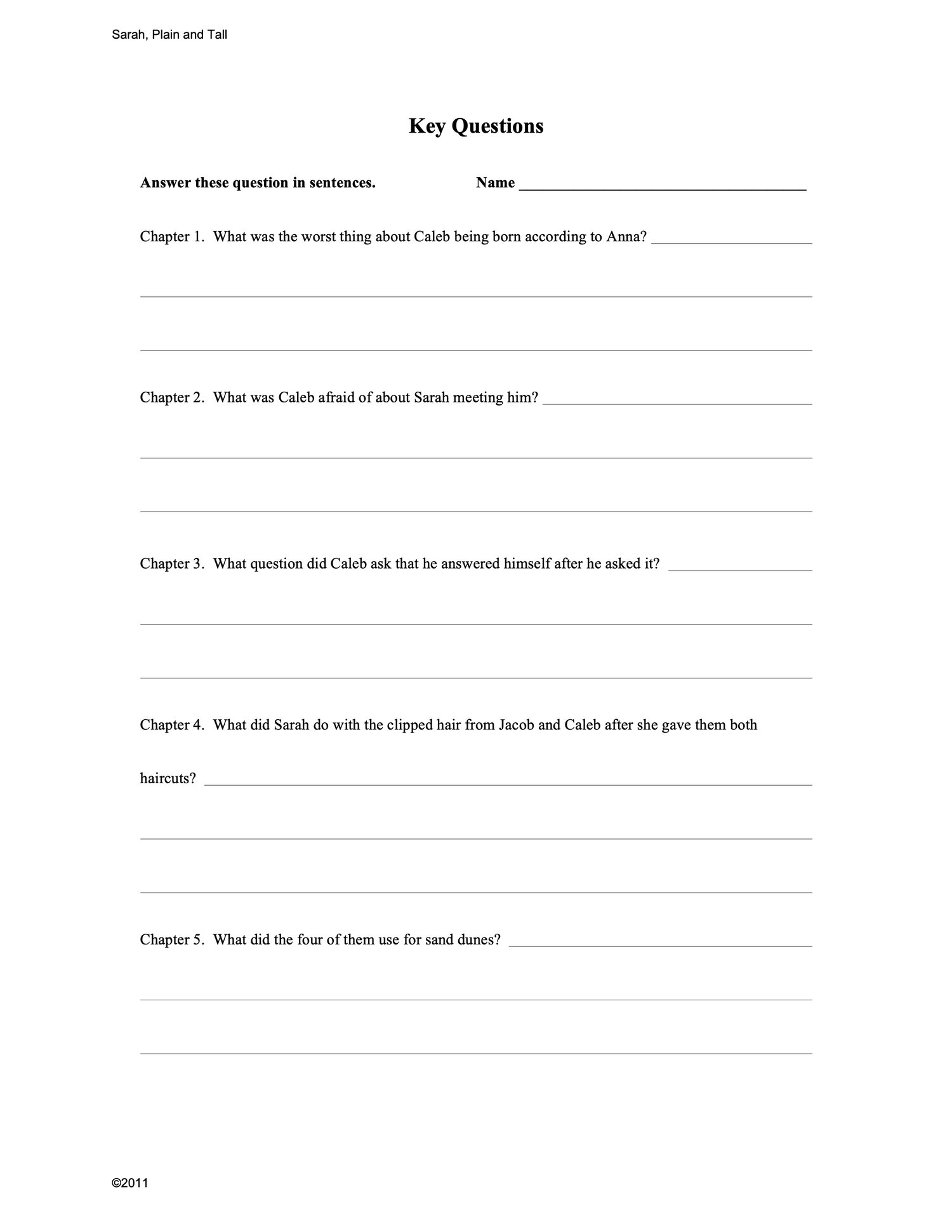 This Sarah Plain and Tall reading comprehension workbook contains over 50 pages of reading comprehension worksheets for Sarah, Plain and Tall By Patricia MacLachian. Student Guide with answer key, Student Workbook with answer key, and a special “Key Questions” worksheet with answer key. Add to cart and download immediately, or save 90% when you purchase all of our reading comprehension workbooks together.
