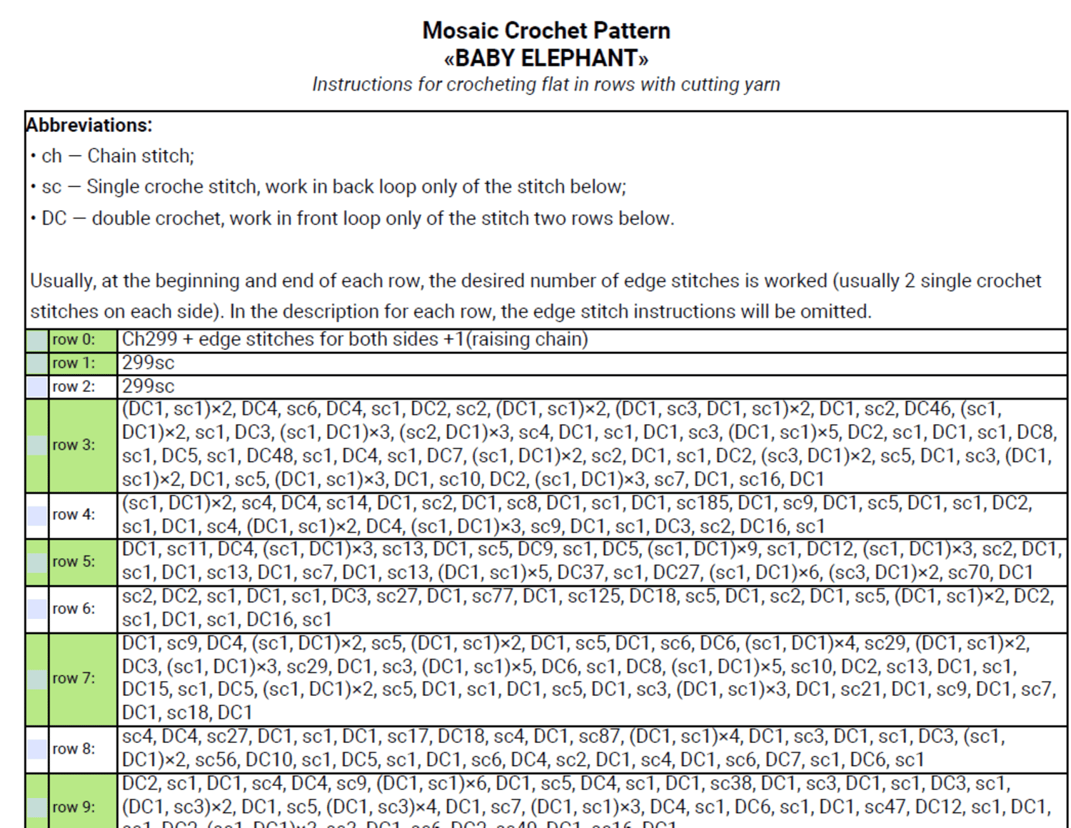 Overlay Mosaic Crochet, BABY ELEPHANT, Written Pattern row by row, Big Chart Xs, PDF instant download
